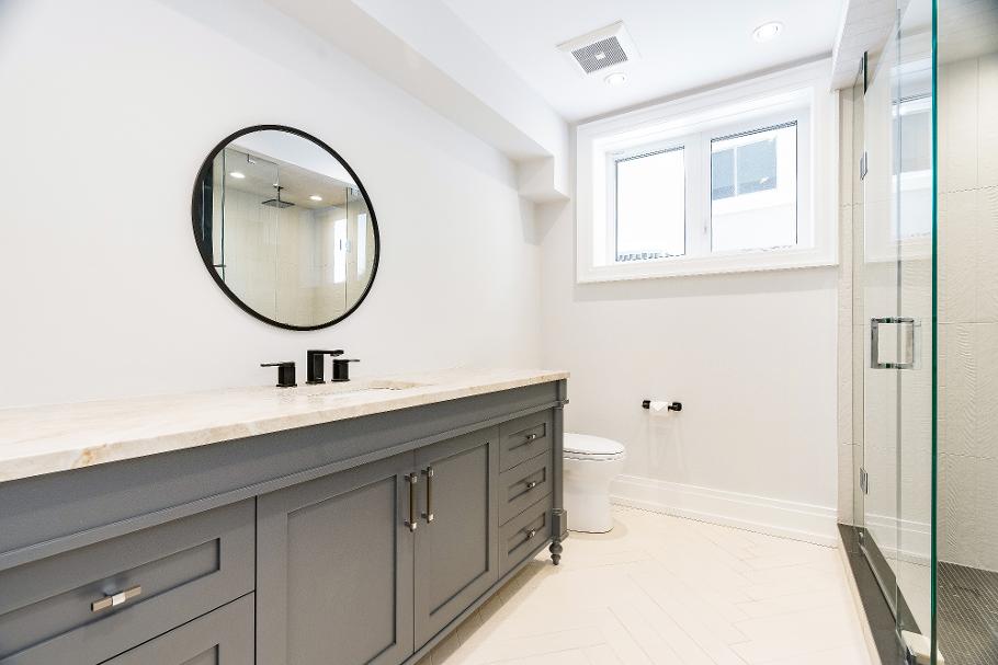 - Vanitywith a quartzcountertop and a Victor+ Albert sink