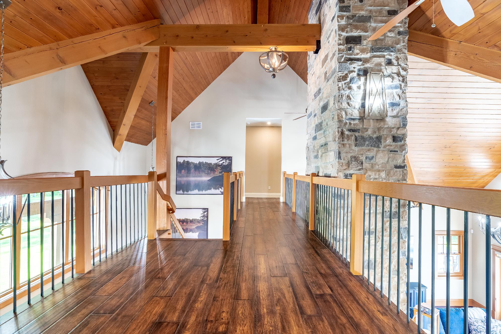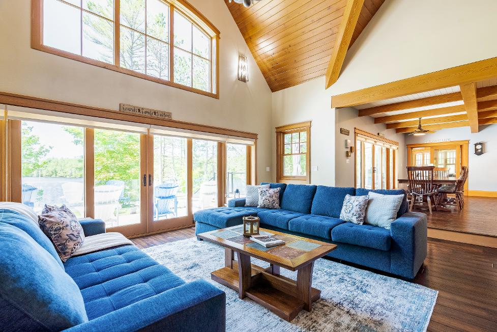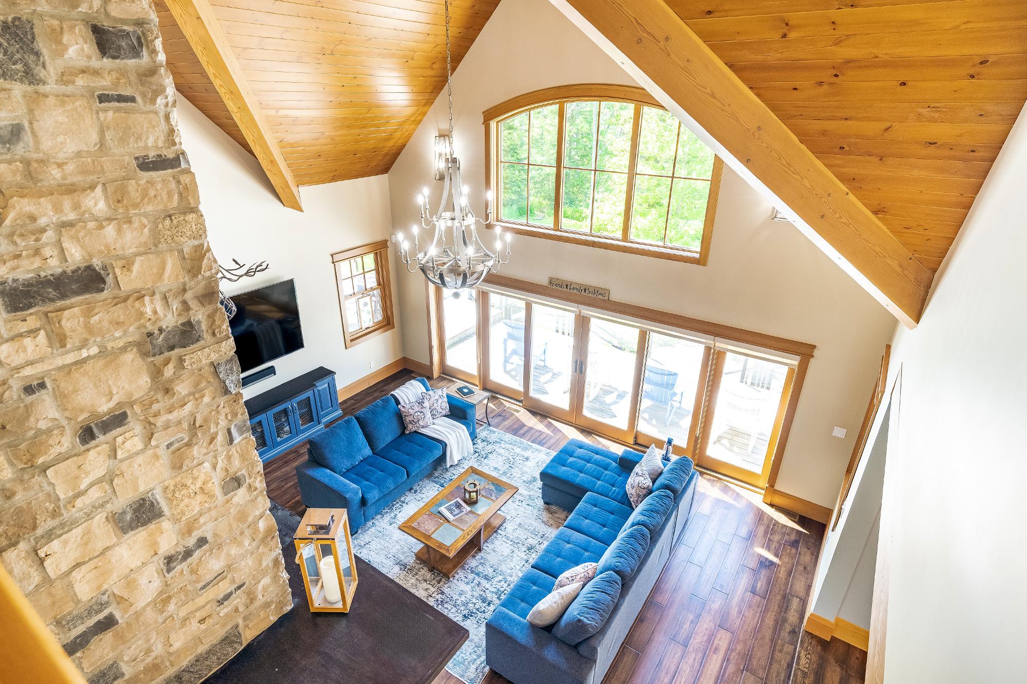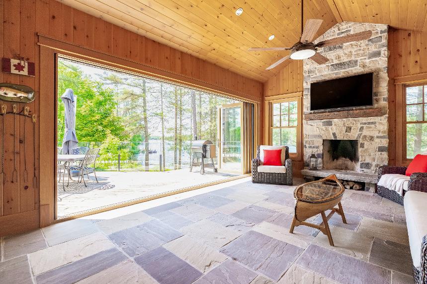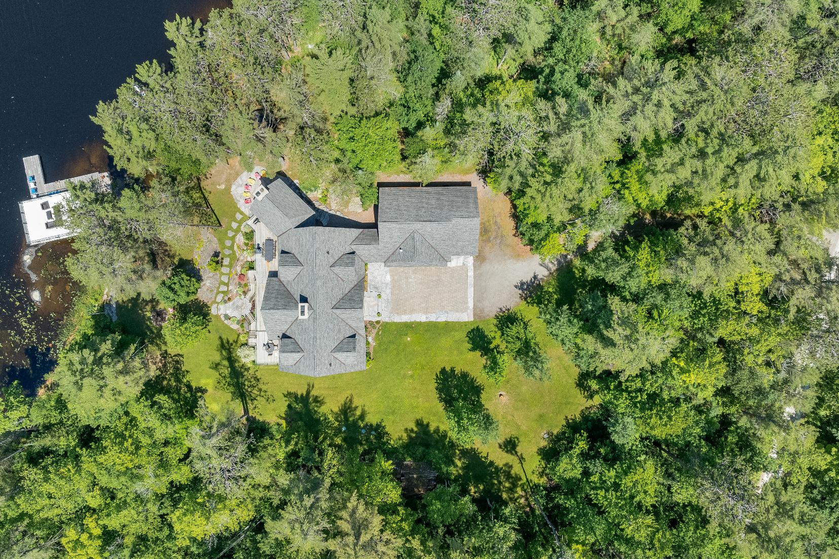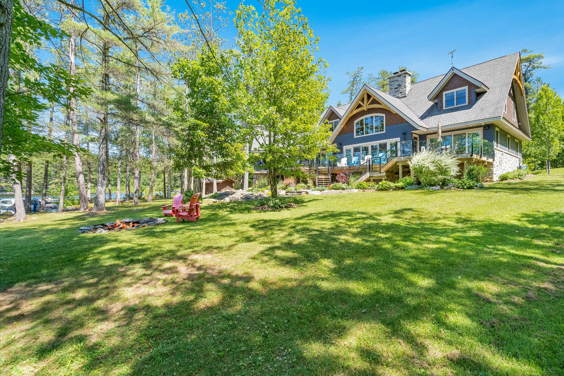 Experiencethe epitome of lakeside living in thisbreathtaking 5,348 square foot waterfront estate,gracefullyset on nearlytwo acresof pristineprivacy.With 317'of clean,gentlysloping shoreline,you?llenjoyeffortlessaccessforswimming,boating,and purerelaxation.A detached boathousewith an inviting second-leveldeckoffersfront-rowseatsto awe-inspiring sunsets,whiletranquilcrown land to the east ensuresuninterrupted seclusion.Impeccablylandscaped groundsframethisretreat,highlighted bya striking 50'naturalstone fireplace and a cedar-lined,wood-fired sauna with a privatechanging area,perfect forunwinding aftera dayon the lake.Whetherit?s morning coffee on theglass-railed deckorquiet eveningsbeneath the stars,everymoment feelslike an escape.Inside,thoughtful design meetstimelessMuskoka charm.Crafted with custom hand-hewn Douglasfirtrim,doors,and staircases,made on-site,the home radiateswarmth and authenticity.Expansive tilt-and-slidewindowsand wall-to-wallreardoorsseamlesslyblend indoorand outdoorliving,flooding the open-concept layout with naturallight.Throughout,premium flooring and high-end cabinetryecho the home'scommitment to quality,whilea Sonosmulti-zone audio system fillseverycornerwith music.Foryear-round peace of mind,an advanced automated securitysystem keepswatch.Wakeeach dayto panoramic waterviewsfrom the serene primarysuite,where oversized windowsinvite theoutdoorsin.Acustom walk-in closet ensuresorganized elegance,and the spa-inspired five-pieceensuite offersa glasswalk-in rain shower,deep soaking tub,heated floors,and a privatewatercloset forultimatecomfort and privacy At the heart of the home,a grand living room crowned bya soaring 23?naturalstonefireplace createsa warm,dramatic focalpoint.The chef?skitchen isboth functionaland beautiful,with top-of-the-line appliances,Caesarstonecentre island,premium cabinetry,and a spaciouspantryforstorage.Adjacent,the Muskoka room offersthe ultimateentertaining experience,completewith a naturalstone fireplace,built-in barbequewith granitecounters,and expansive sliding doorsand screensthat invite the outdoorsin,rain orshine. Beyond themain living spaces,discovertheimpressive 2,000 square foot oversized three-cargarage,designed asan integrated extension of the home.Above,a privateguest suite offersa spaciousbedroom and a cozyliving room with a cornerfireplace,idealfor extended familyorovernight guests.Inside the main home,fouradditionalbedroomson the upperlevelensure everyonehastheirown space.Thisestate capturesthe truespirit of Muskoka living,offering both an elegant familyhome and a timelessretreat.