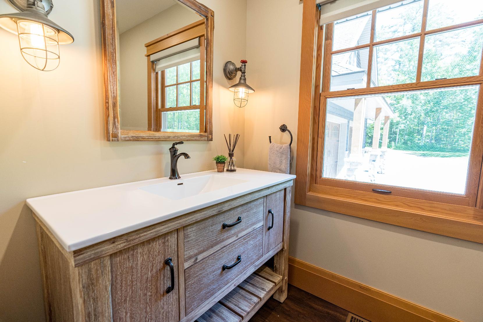 - Quartz-topped vanity
