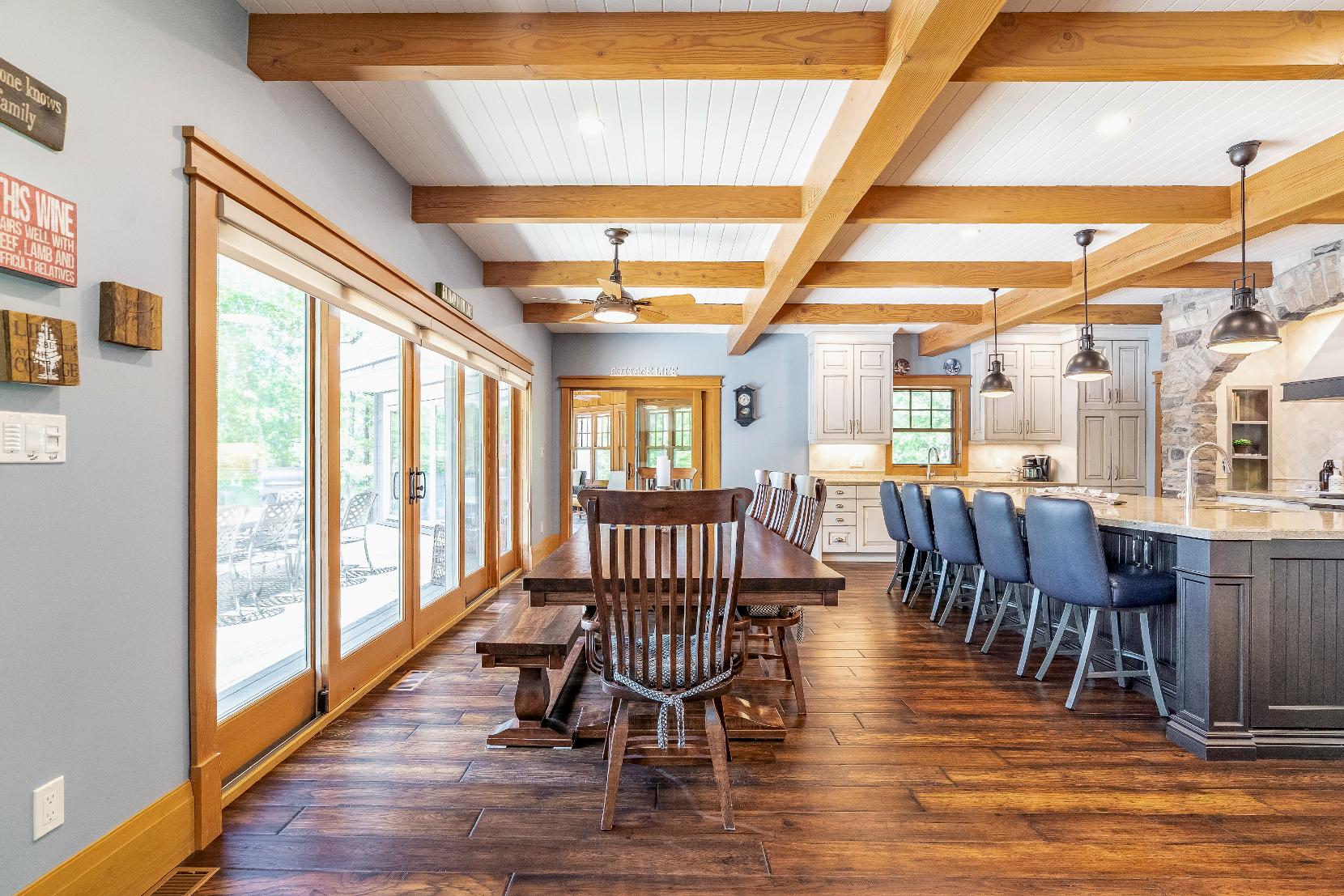 - Expansivesliding glass-doorwalkout leading to the deck