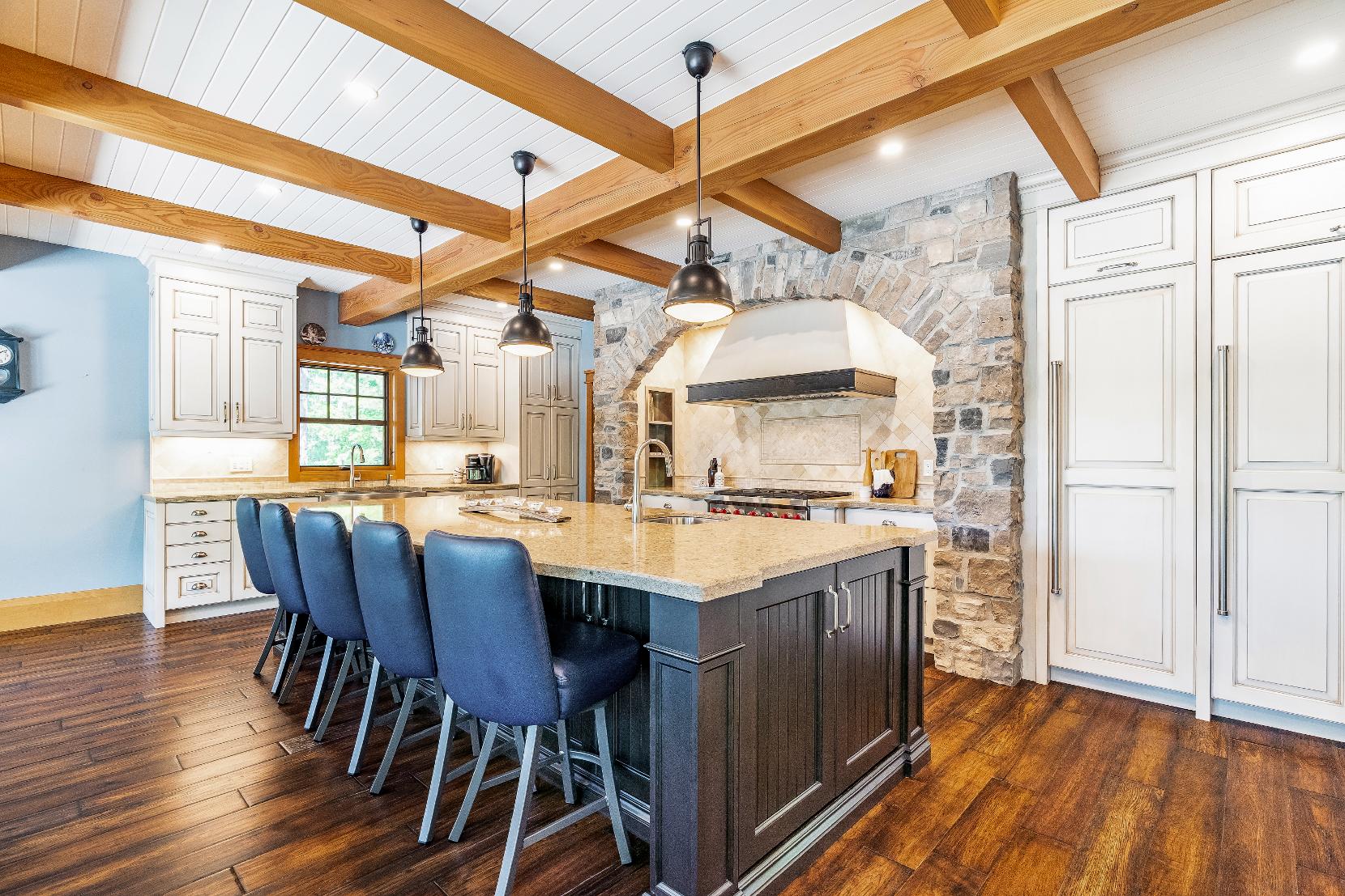 - Centre island with Caesarstonecountertops, a prep sink,and breakfast barseating