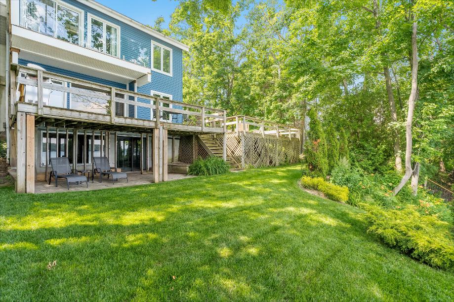 The expansive lot features100'of primewaterfront,a spacious deckforentertaining,a walkout basement,and a circular driveway,alldesigned forenjoying the outdoorsin everyseason