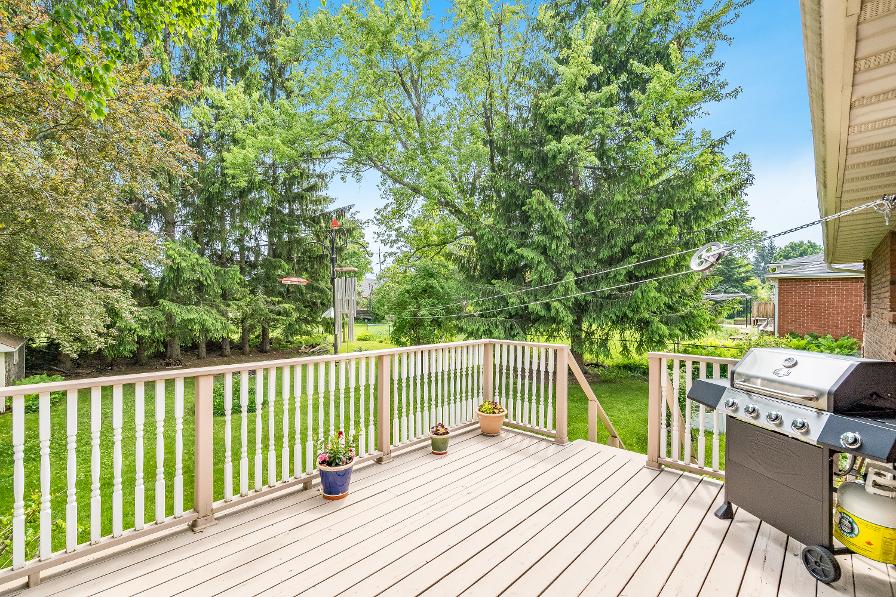 - Sizeable backyard featuring a large backdeck,beautifulmature trees, and a 10'x20'garden shed settled