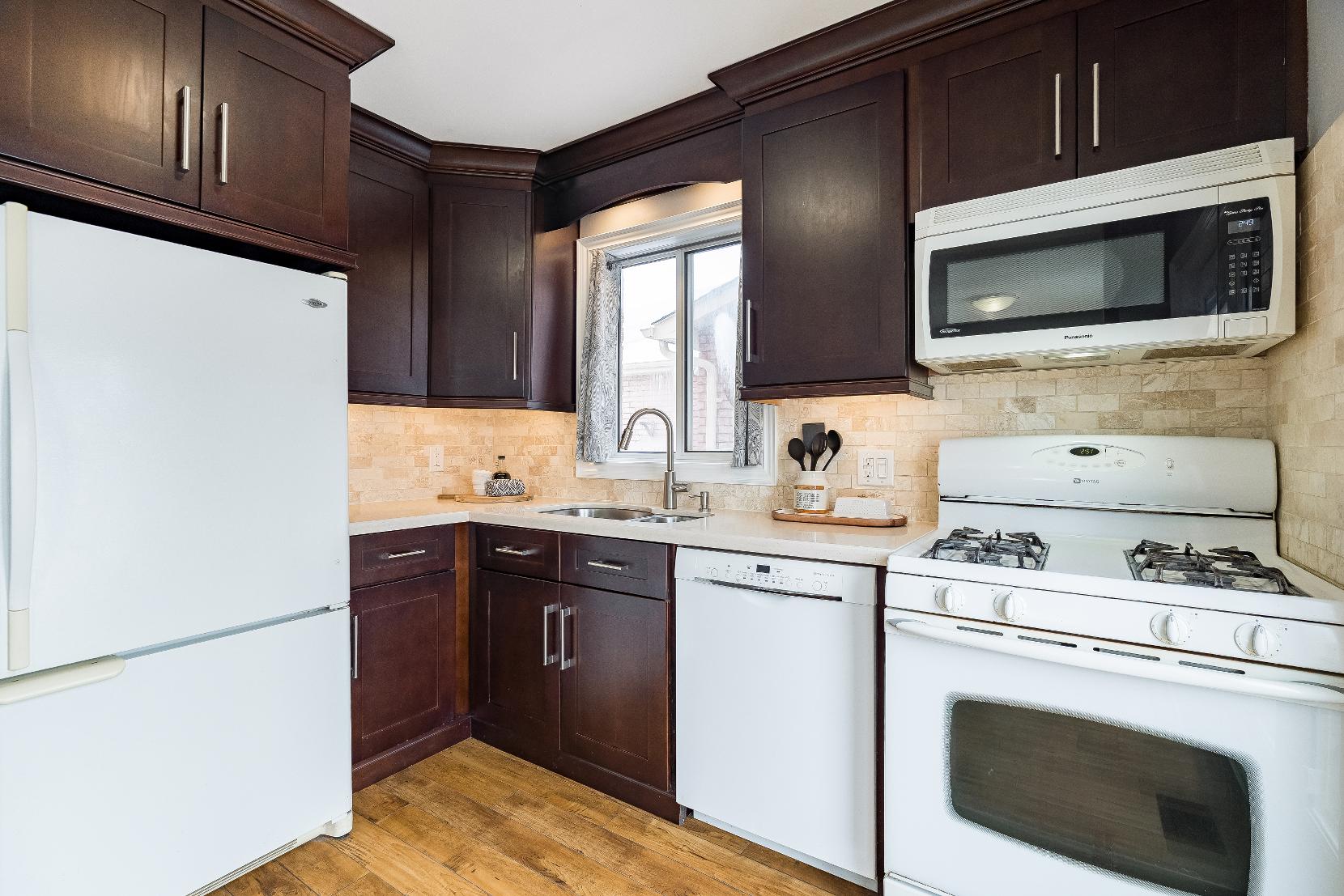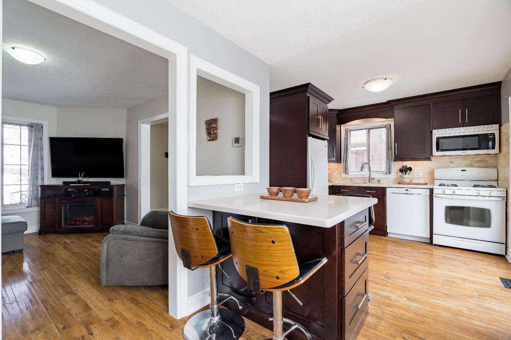 Beautifullyupdated kitchen featuring modern finishesand an open layout that flowsseamlesslyinto the main living space,idealforeverydayliving and entertaining with ease
