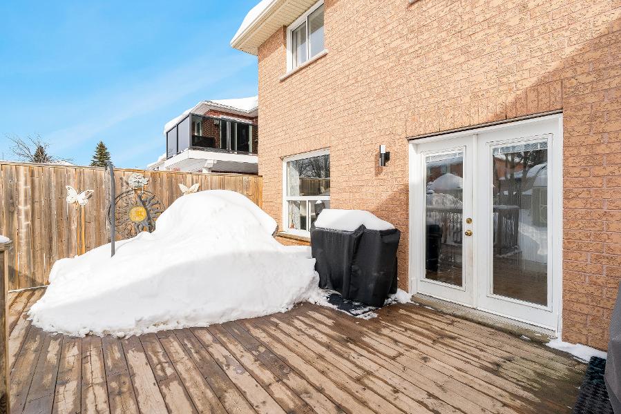 - Outside,you'lldiscovera fullyfenced backyard equipped with an expansive16'x24' deckoverlooking lush landscaping,perfect for soaking up the sun,hosting summer barbeques,and stargazing in the evenings
