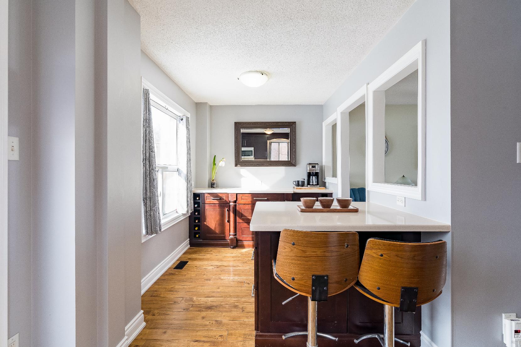 - Island completewith breakfast barseating, perfect forcasualmeals