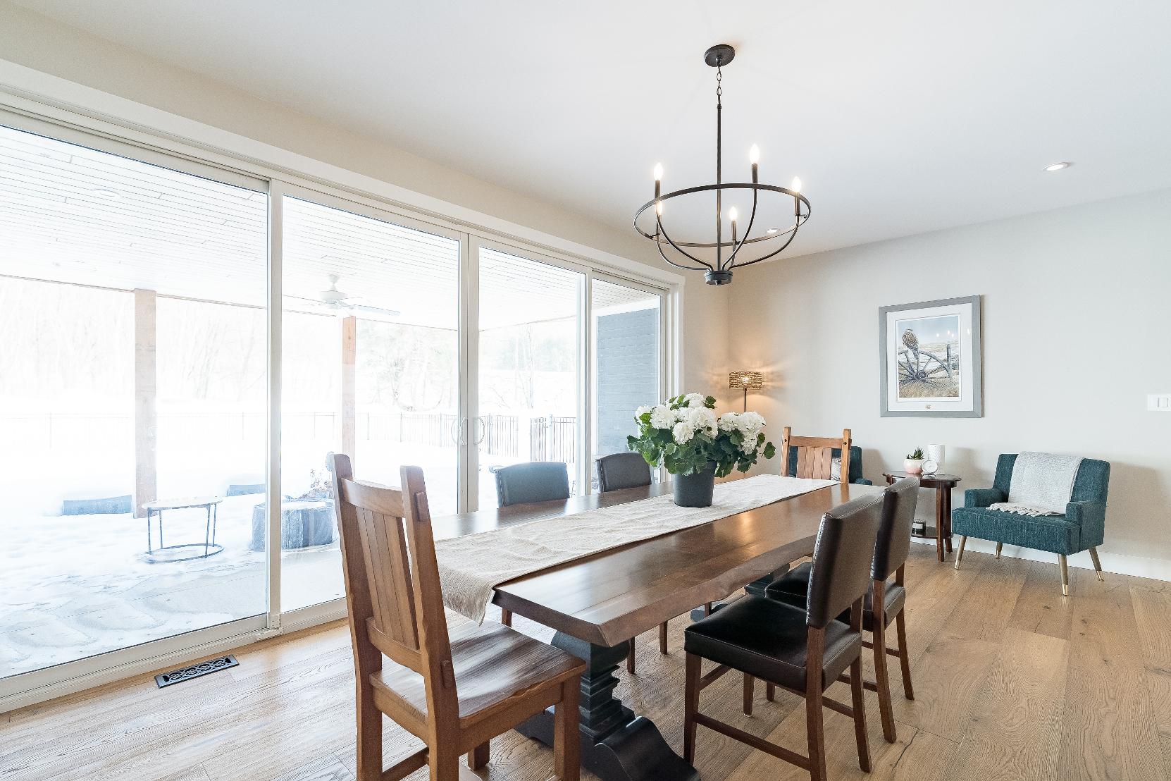 - Arrayof windowsthat flood the spacewith naturallight and seamlesslydrawthe beautyof the outdoorsinside