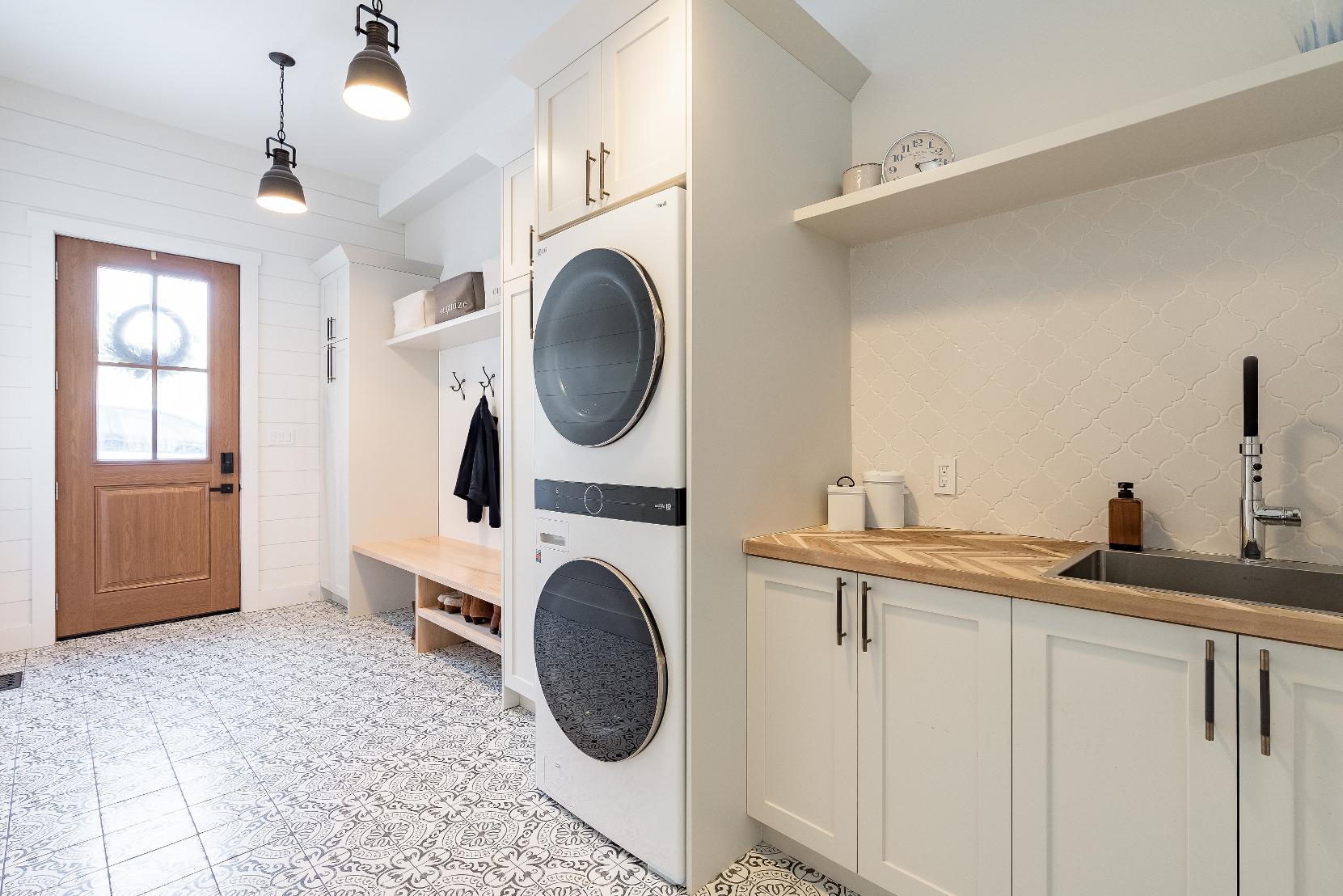 - Versatile space thoughtfullydesigned to function asboth a mudroom and laundryroom
