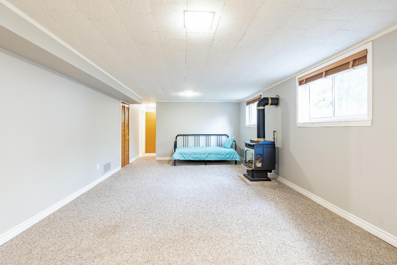 Separatebackyard entranceto the basement offering fantastic in-lawpotentialwith a spaciousbedroom,fullbathroom,and a generousfamilyroom completewith a cozywood-burning stove