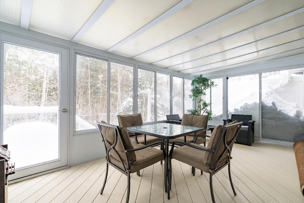 - Surrounding windowsflooding the space with naturallighting and overlooking a treed view