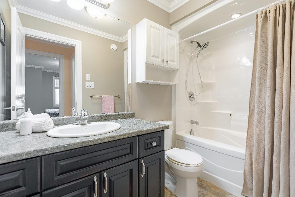 - Singlesinkvanity complete with under-sinkcabinetryfor seamlessorganization