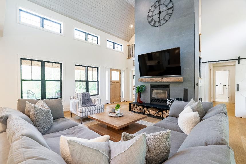 Step into modern luxurywith thisfourbedroom,threebathroom home,just two years old,showcasing a chef-inspired kitchen with quartzite countertops,a striking fireplace,engineered hardwood floors,and sleekporcelain tilesthroughout