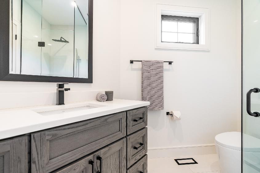 - Vanitywith an extended countertop and amplestorage fortoiletries