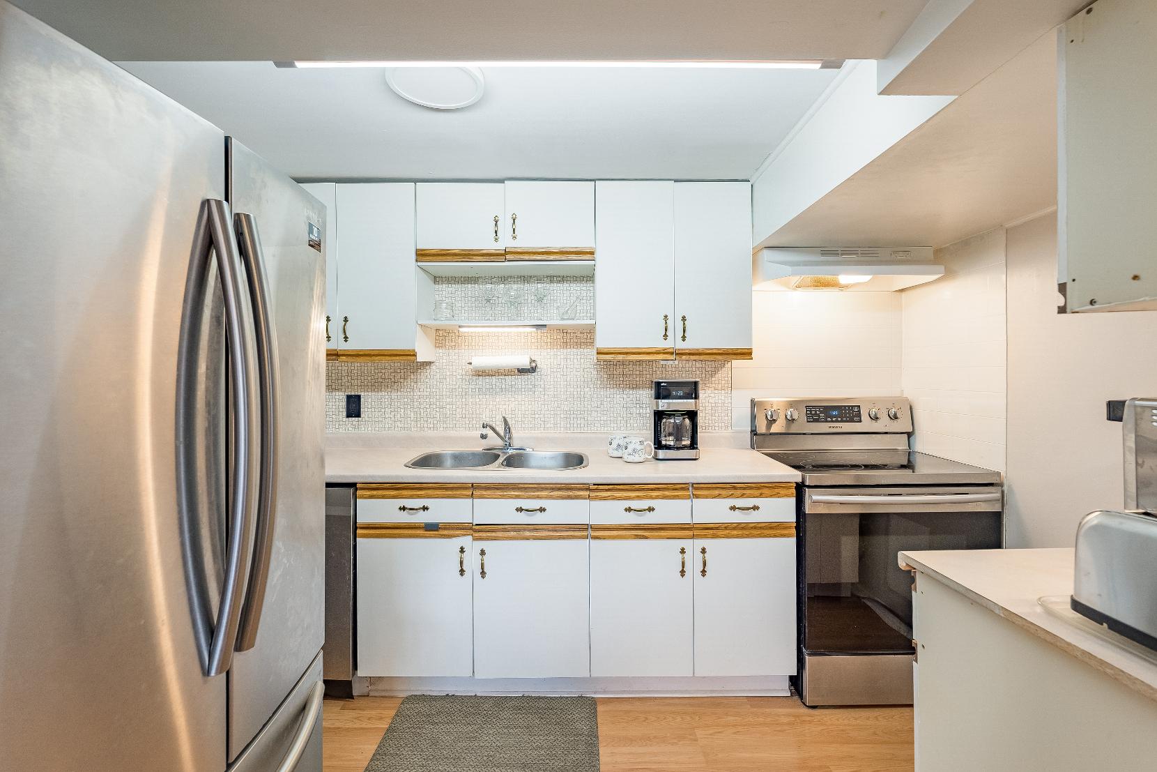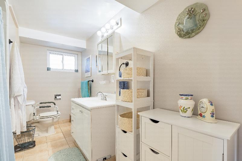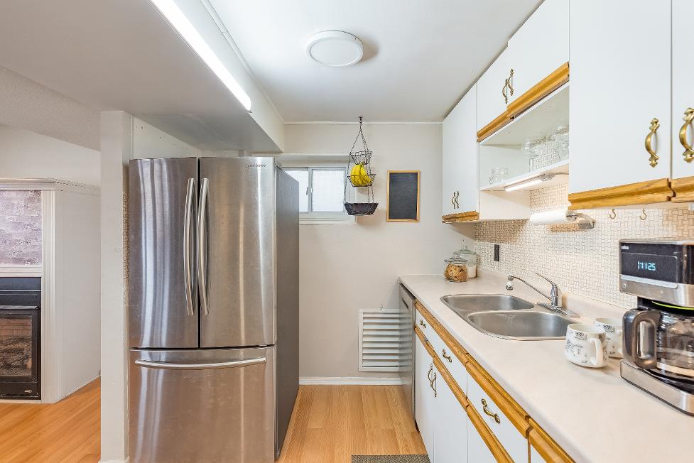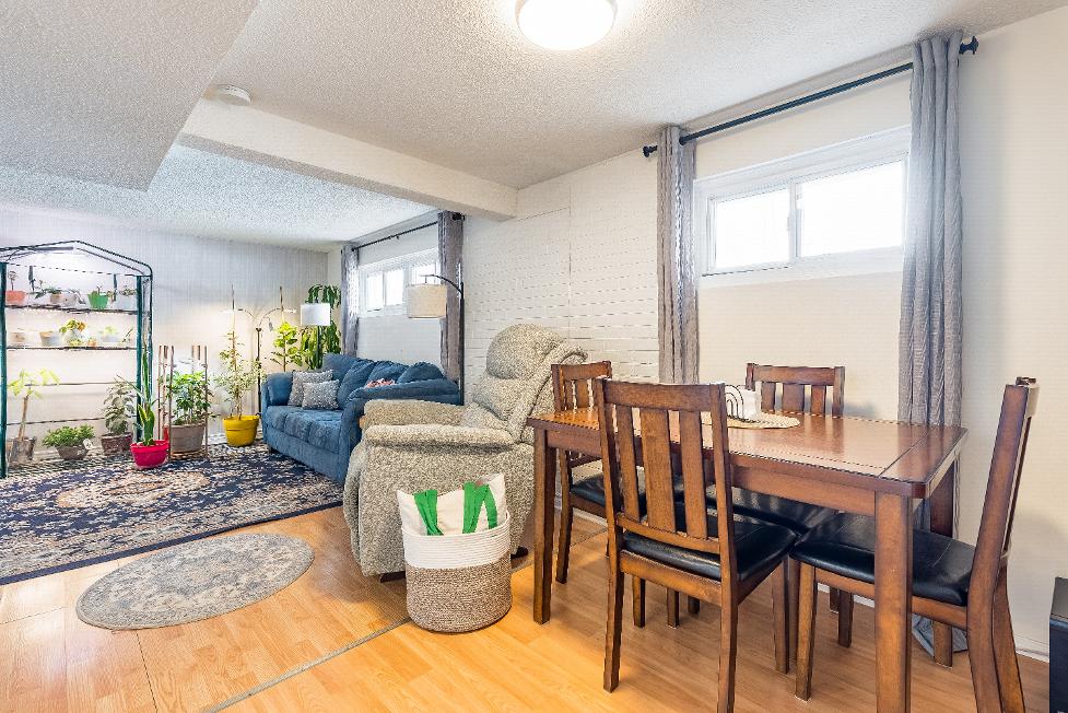 Radiant main levelincluding threebedrooms,a fullbathroom,kitchen,dining area, and familyroom,whilethe fullyfinished basement in-lawsuite boastsitsown kitchen,two bedrooms,a bonusden oroffice,and separatelaundryon each level