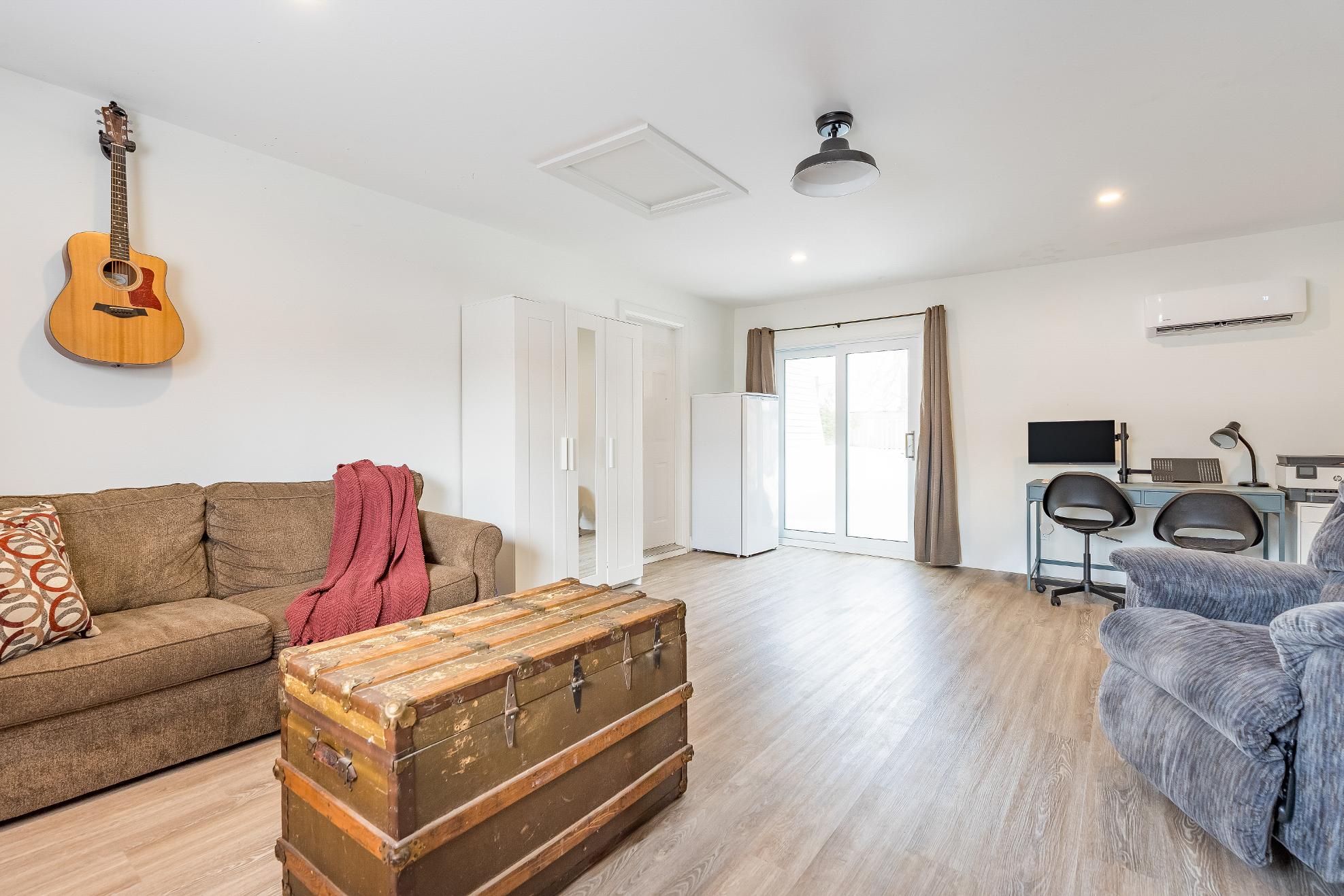 Flexiblegarage conversion creating an additionalfinished living space with existing framing that allowsforan easyconversionbackto a double cargarageif desired