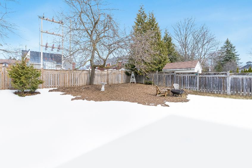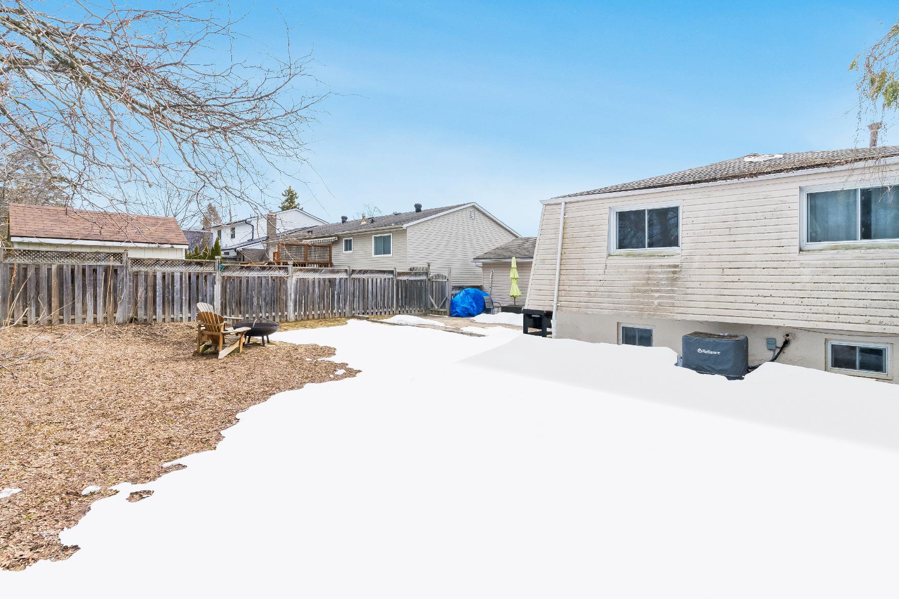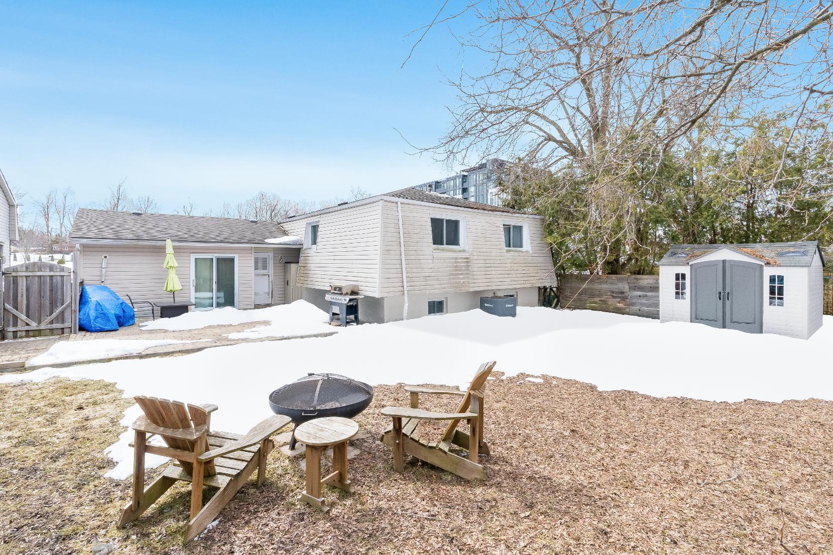 - Outside,you'llfind a fullyfenced backyard complete with a firepit and a brand newgarden shed (2025),enveloped within lush trees