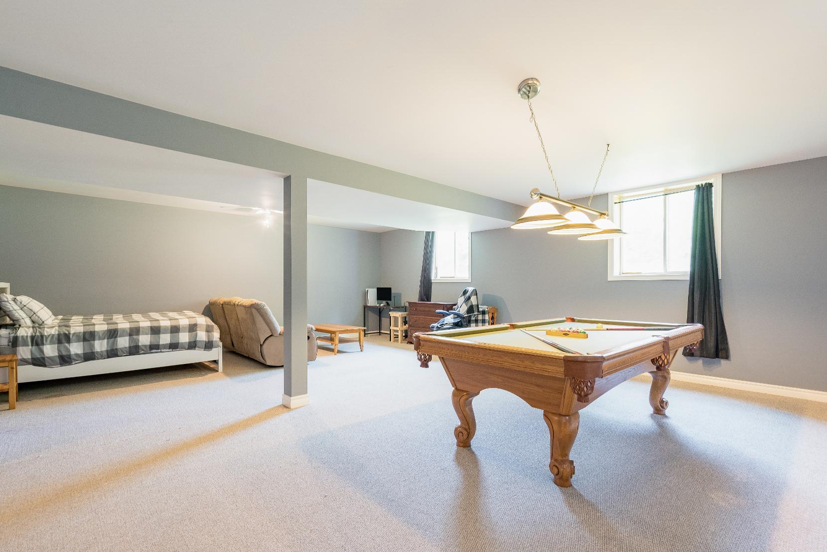 Partiallyfinished basement offering ample additionalliving space,including a recreationroom completewith a pooltable and two largeunfinished roomswith potentialforexpansion,plusthe option to add a third bathroom