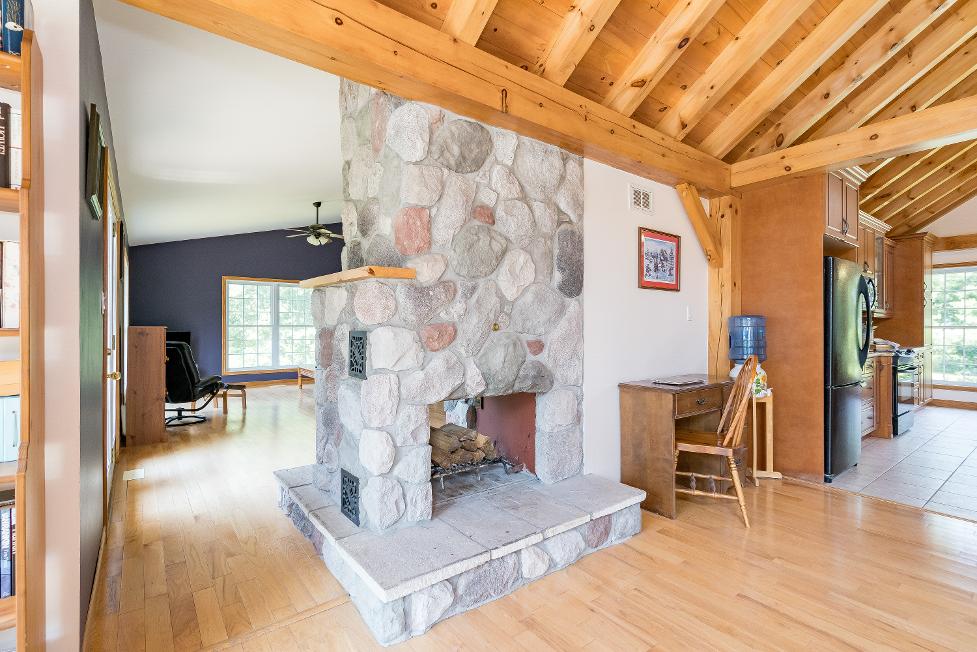 - Dualsided wood-burning fireplaceproviding additionalwarmth