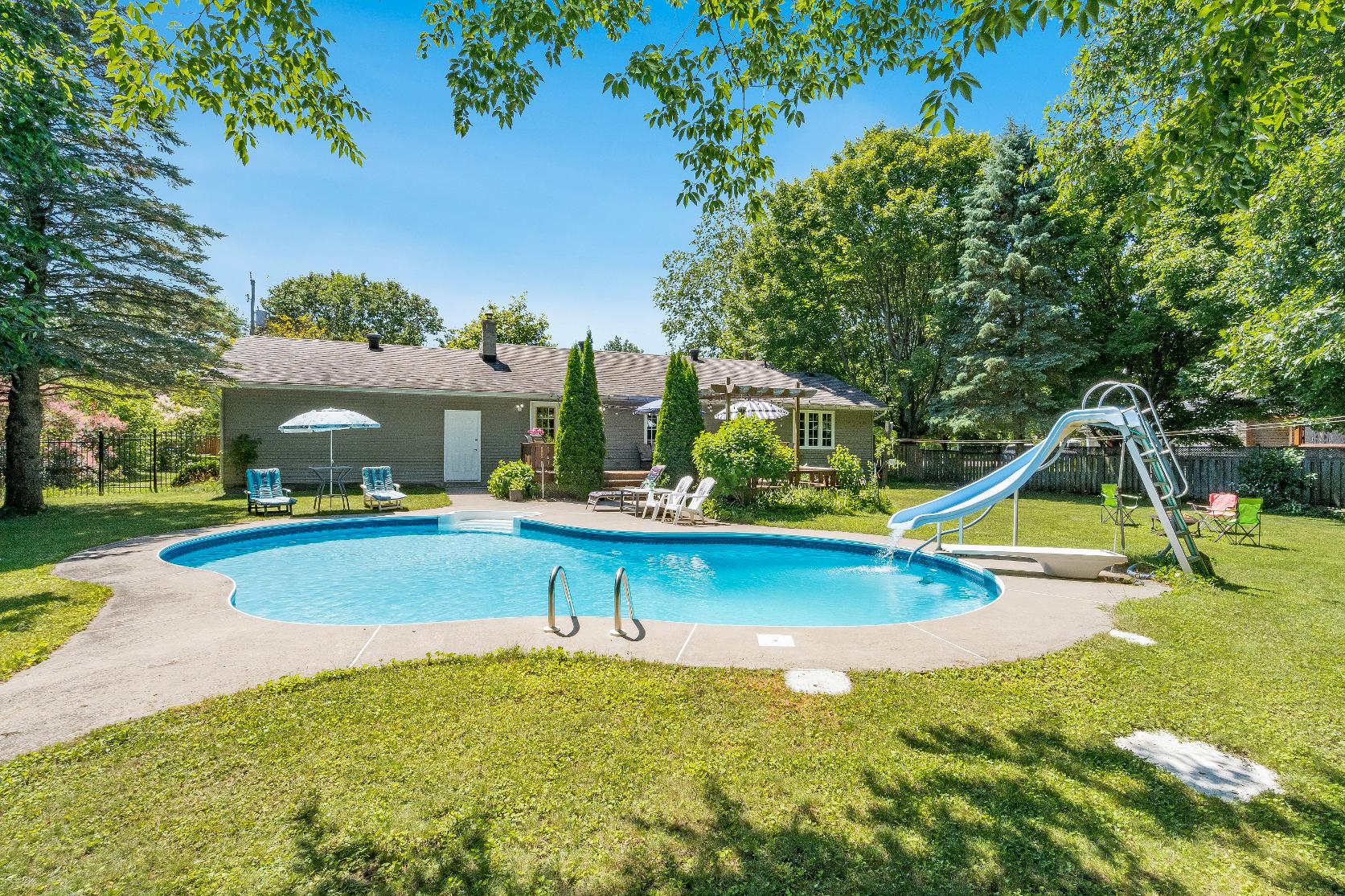 - Sizeable and private backyard surrounded byplentyof greenspace,dotted bymaturetrees, and finished with a refreshing inground pool
