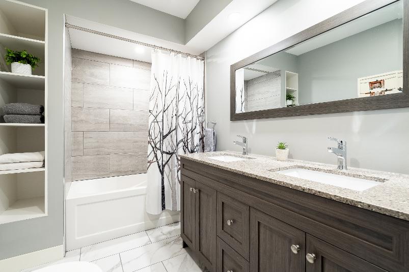 - Dualsinkvanitycomplete with under-the-sinkcabinetry