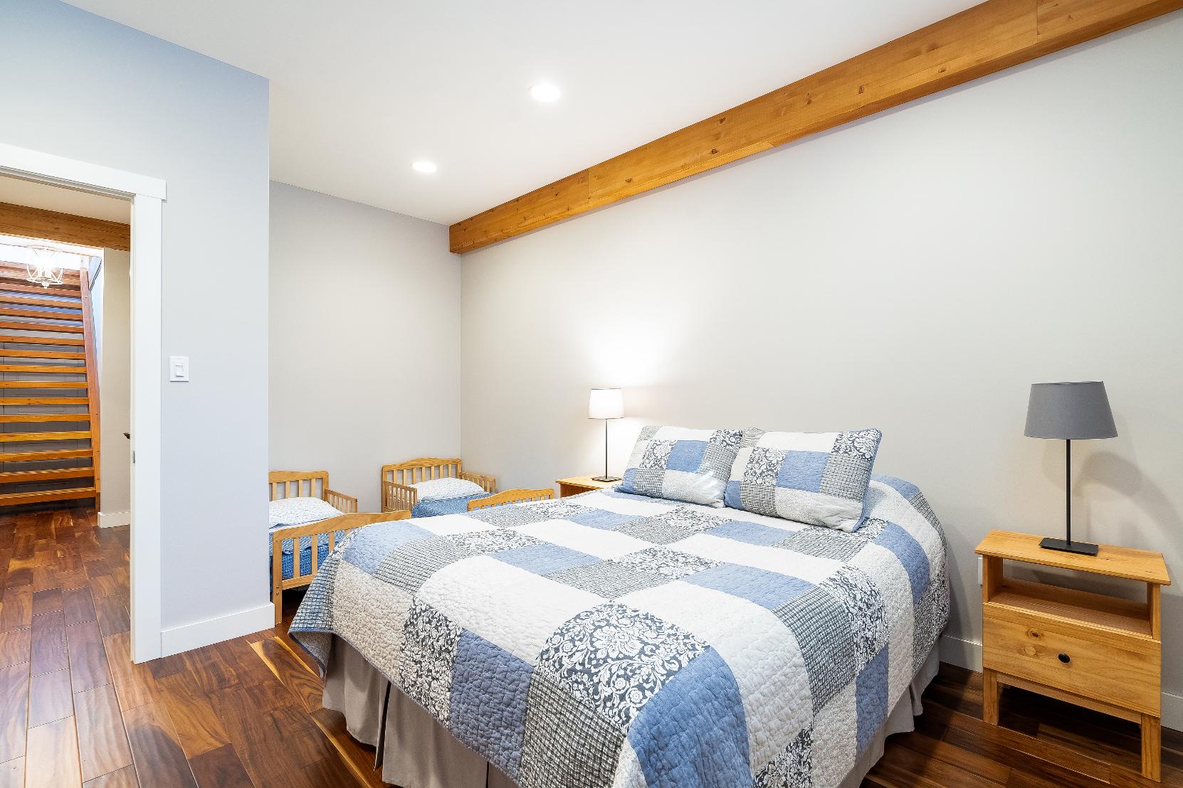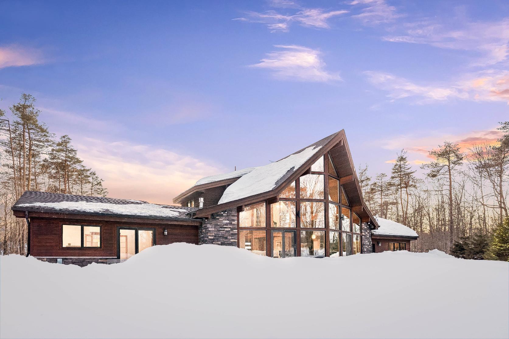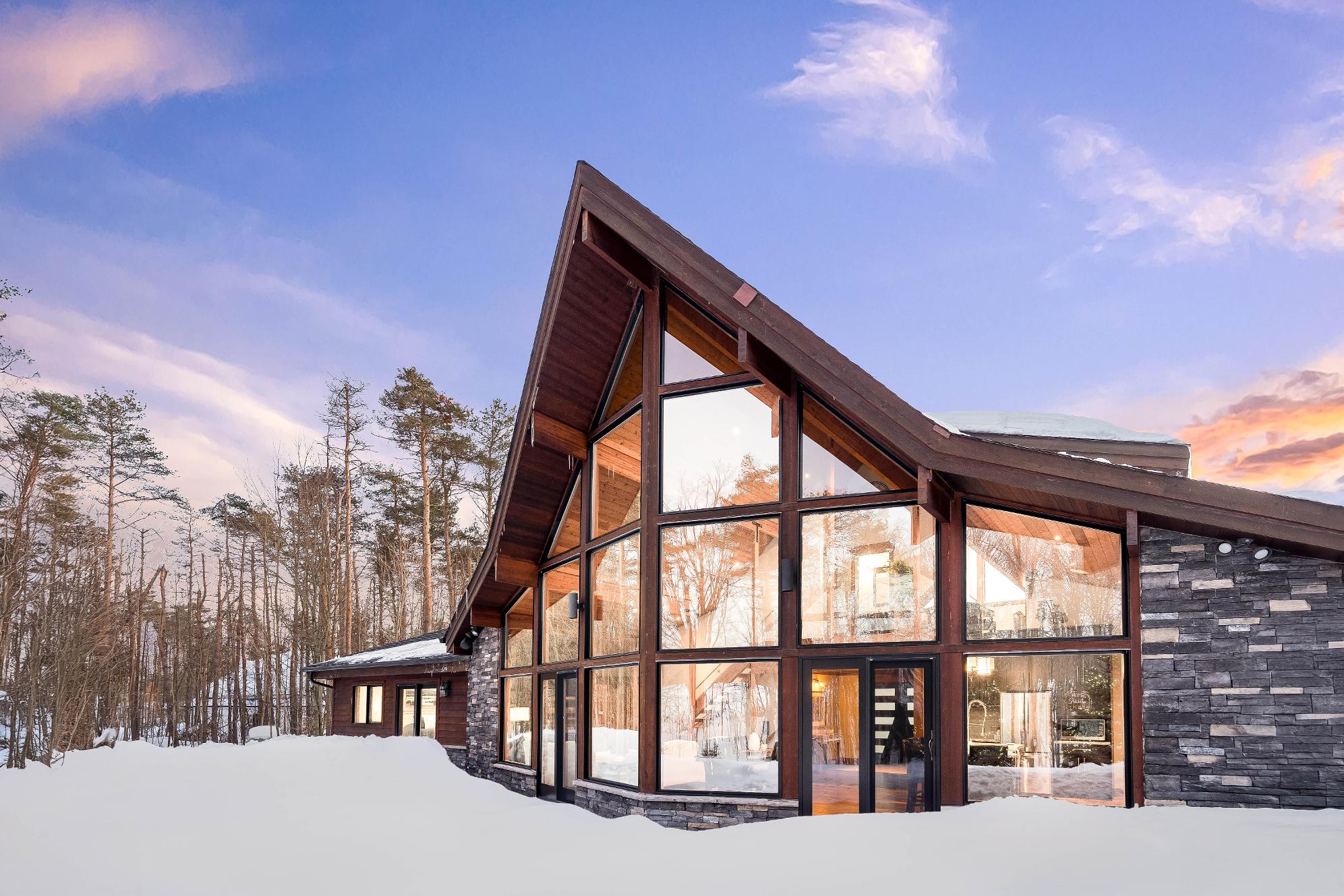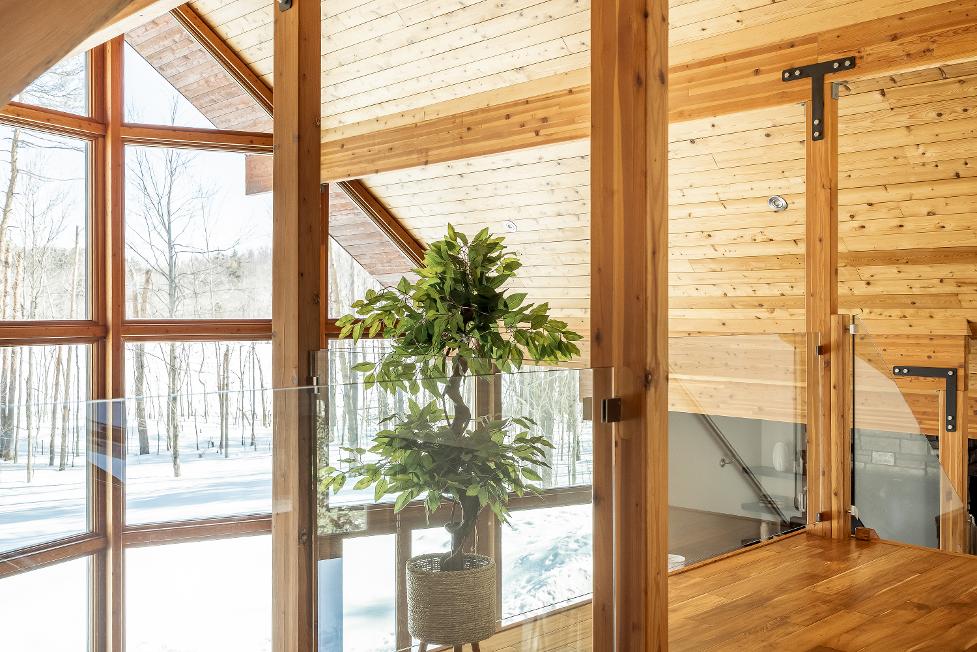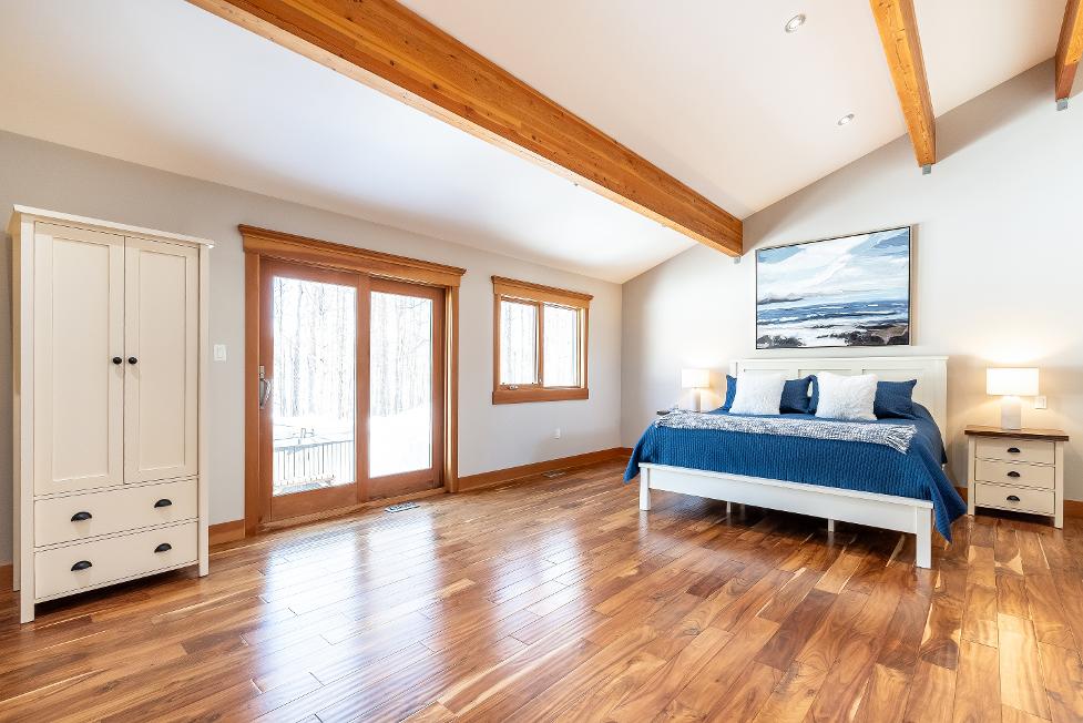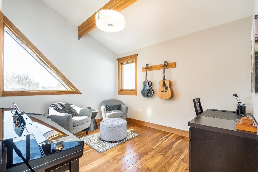 Stepping inside,you're greeted bysoaring 23?vaulted ceilings,expansivewindows,and a breathtaking open-concept design that floodsthehome with naturallight and sweeping viewsof nature,whereexposed beams,a dramatic stonefireplace with a reclaimed mantle from the originalHouben farmstead,tempered glassrailings,and solid core Douglasfirdoorscome togetherto create a space that isaswarm and storied asit is architecturallystunning