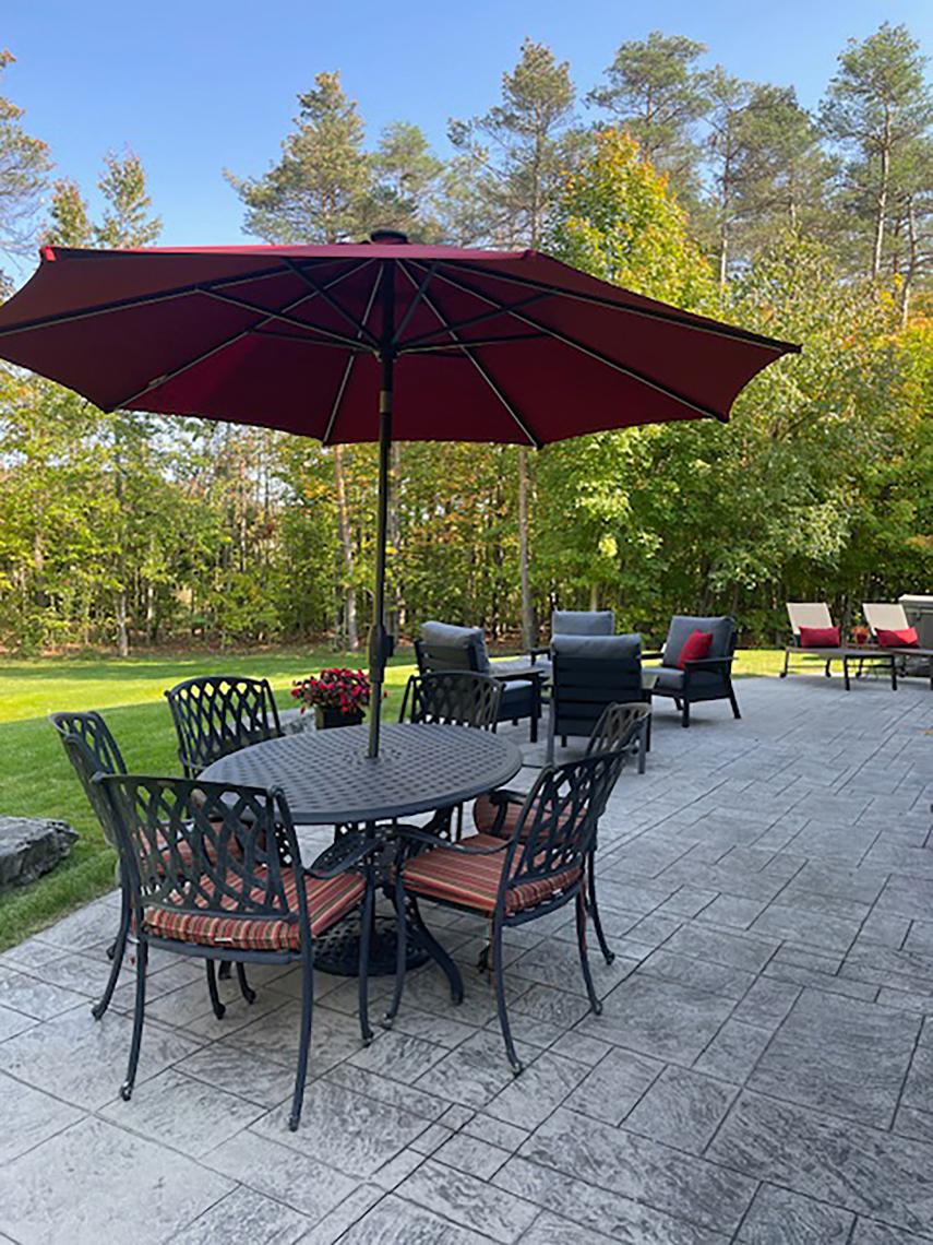 - Retreat to the backyard boasting a stamped concretepatio,a luscious