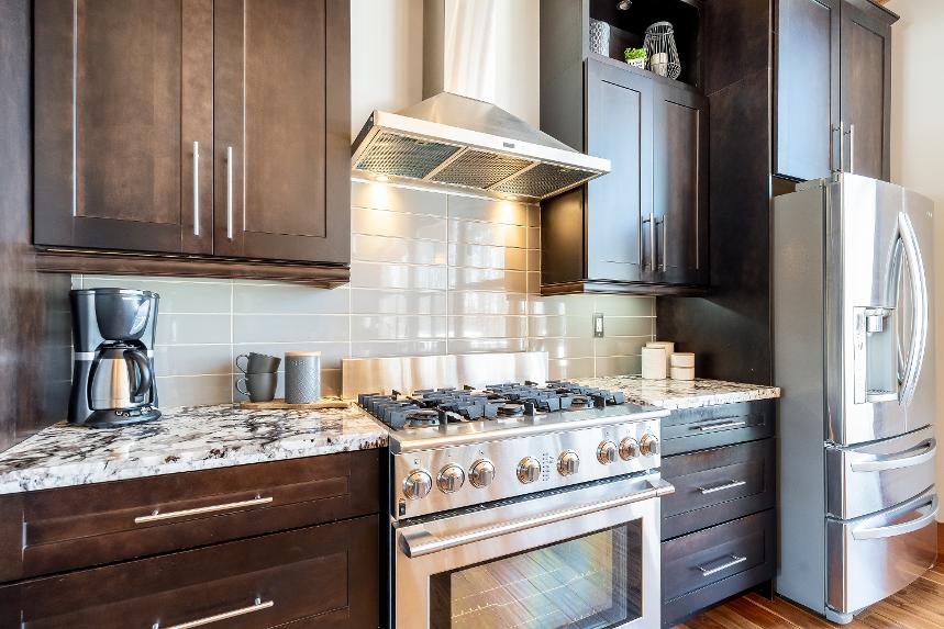 - Granite countertopsaccented bya tiled backsplash