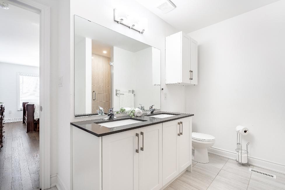- Quartz-topped dualsinkvanitywith helpful storagebelow