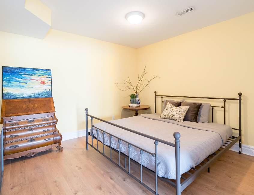 The fullyfinished walkout basement presenting two largeroomsperfect forguest accommodation,a 3-piecebathroom,and a cold storageroom,in addition to a largefamilyroom completewith a gas fireplace and leading onto a bricked patio area and a covered screened-in porch createsflexible living forthe wholefamily