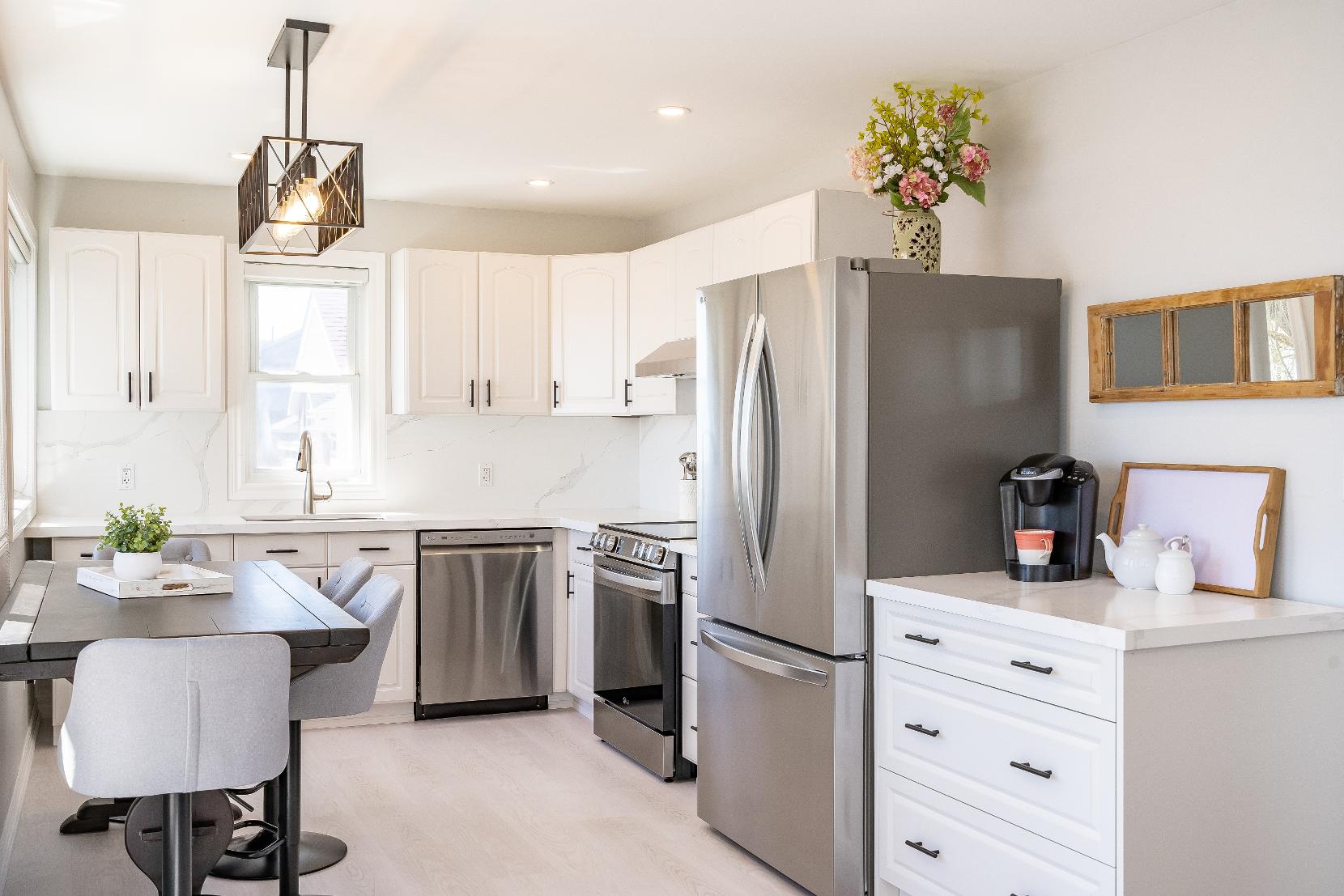 - Amplewhitecabinetryand counterspace, perfect forprepping large meals