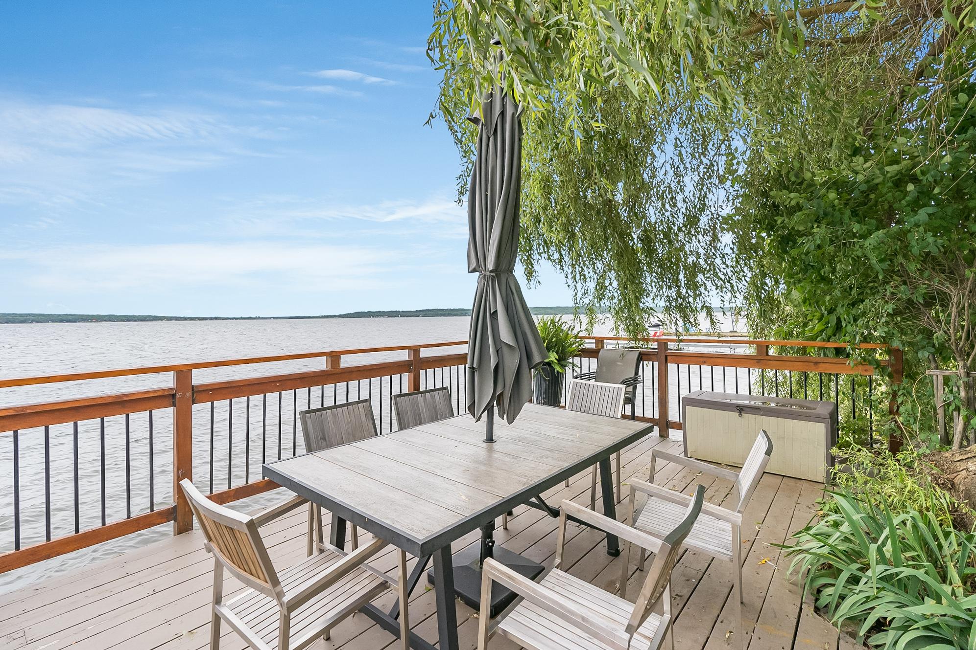 Wakeup to stunning easternsunrisesoverthe waterand enjoyseamlessindoor-outdoorliving with walkout accessfrom both levelsof the home,whetherit ismorning coffee on the lowerdeck orevening drinkson the upper,the connection to the waterfront isconstant and effortless