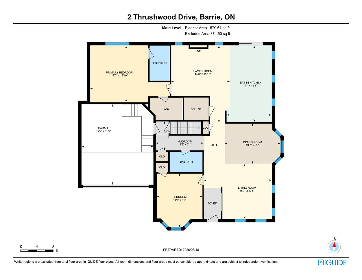 Spaciousprimarybedroom located on themain levelwith a fullensuiteand walk-in closet, complemented bya a comfortable familyroom featuring a cozygasfireplace