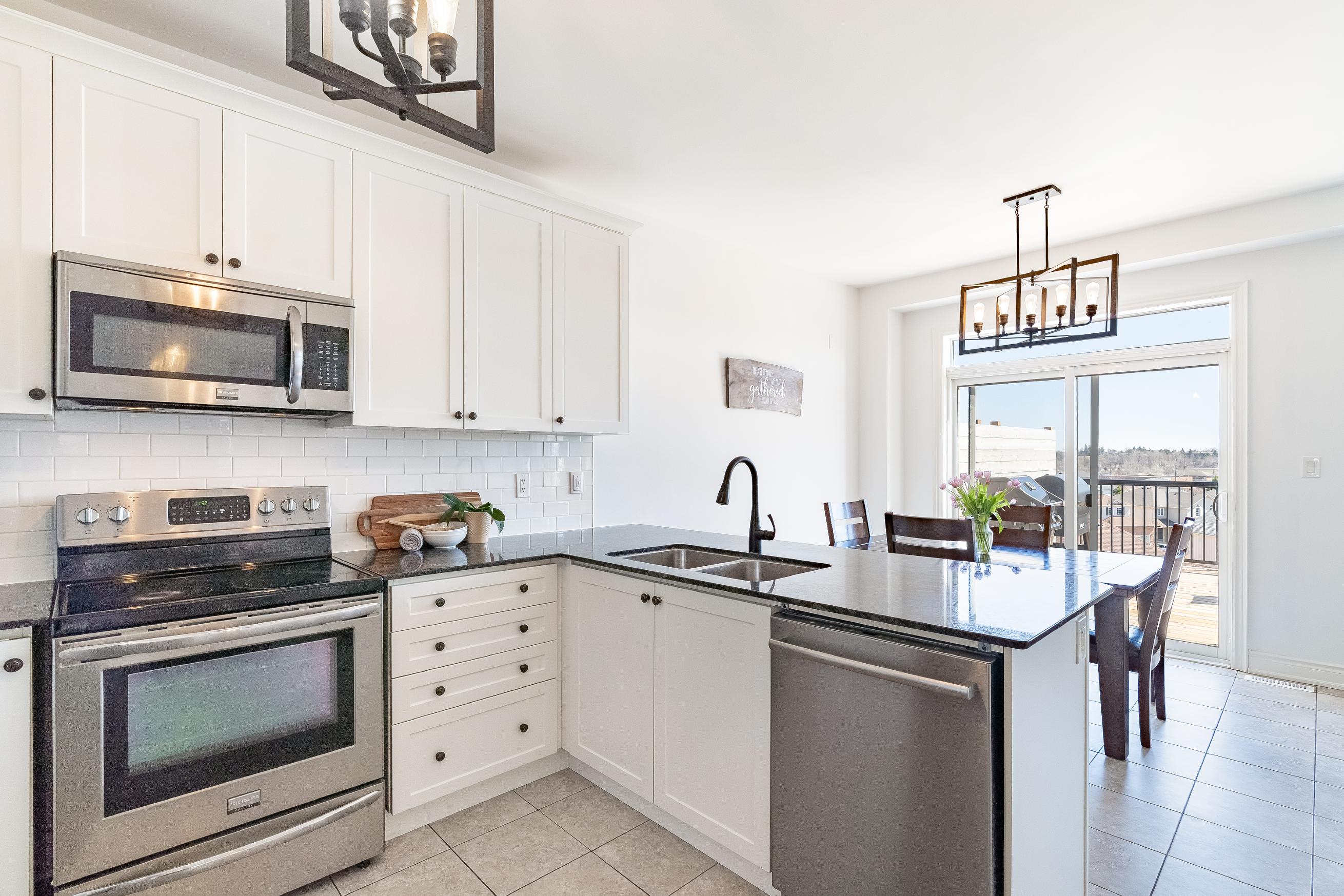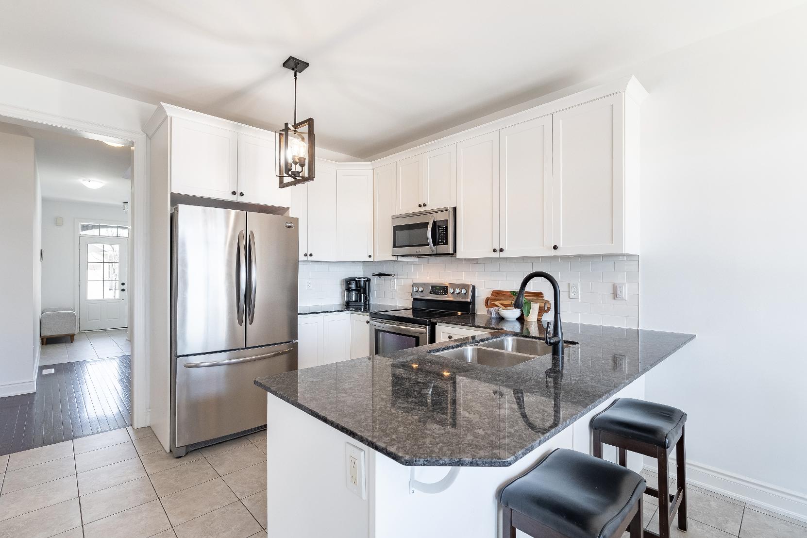 - Peninsula boasting breakfast barseating and a dualstainless-steelsinkwith a gooseneckfaucet