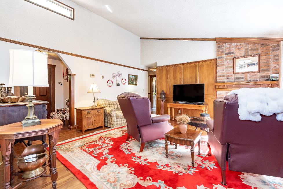 Soaring vaulted ceilingselevatethe open-concept layout,creating a sense of spaciousnessand light,whilethe main levelliving room boastsa cozyfeature fireplaceand gleaming original hardwood floors,offering the perfect spot to unwind orentertain