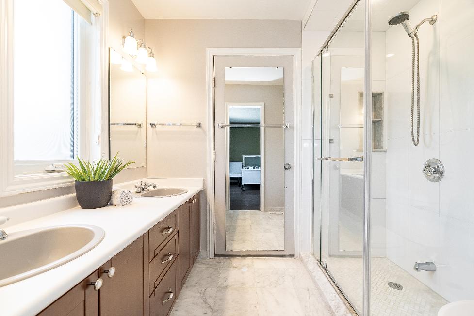 - Dualsinkvanitycomplete with ample under-the-sinkcabinetry