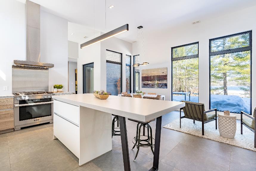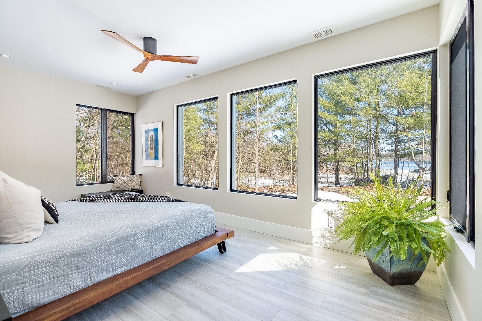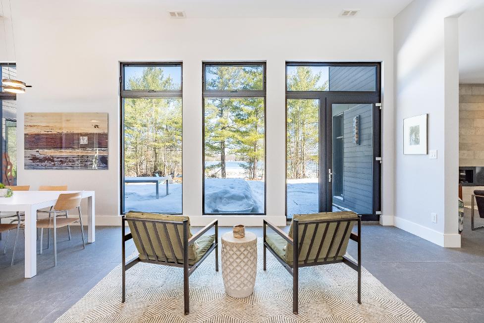 - Wraparound windowswith exceptionalforest and waterviews,flooding the space with naturallight