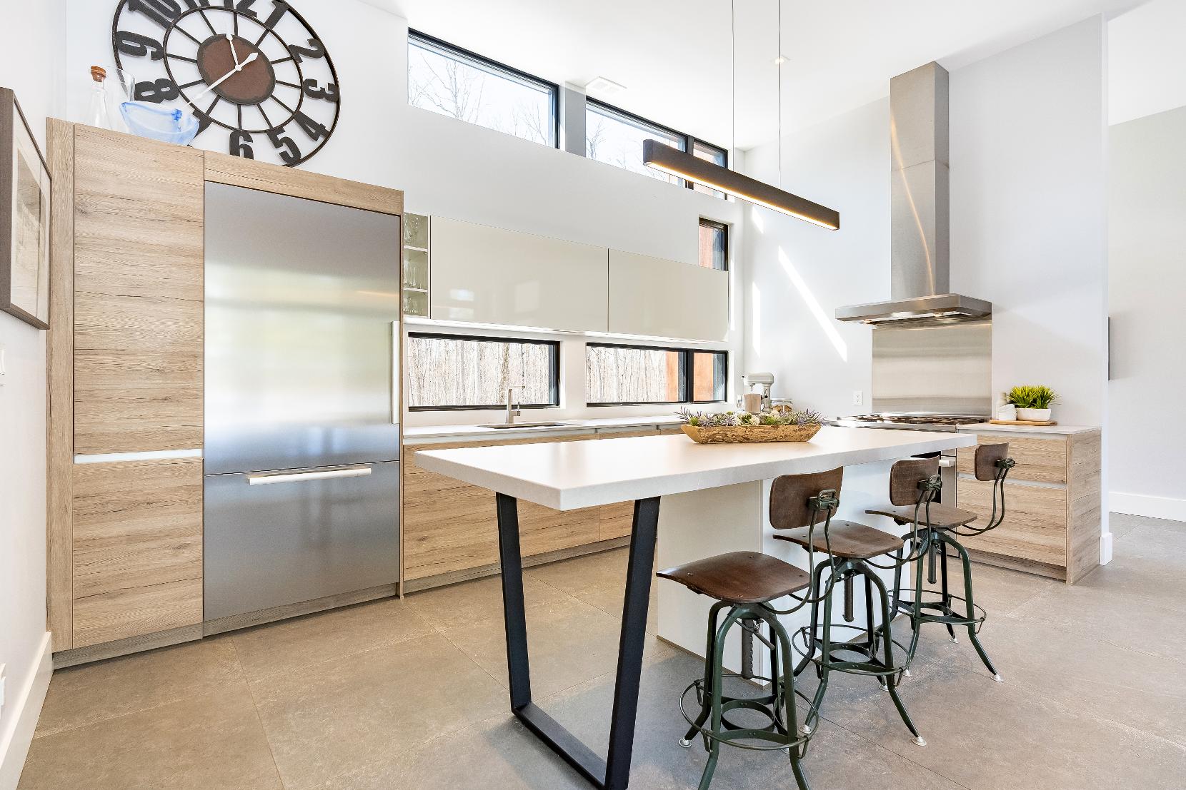 Sleekcontemporarydesign combined with warm naturalmaterials,gourmet kitchen with premium finishes,sophisticated flooring,and thoughtfularchitecturaldetails, providing an inviting living space
