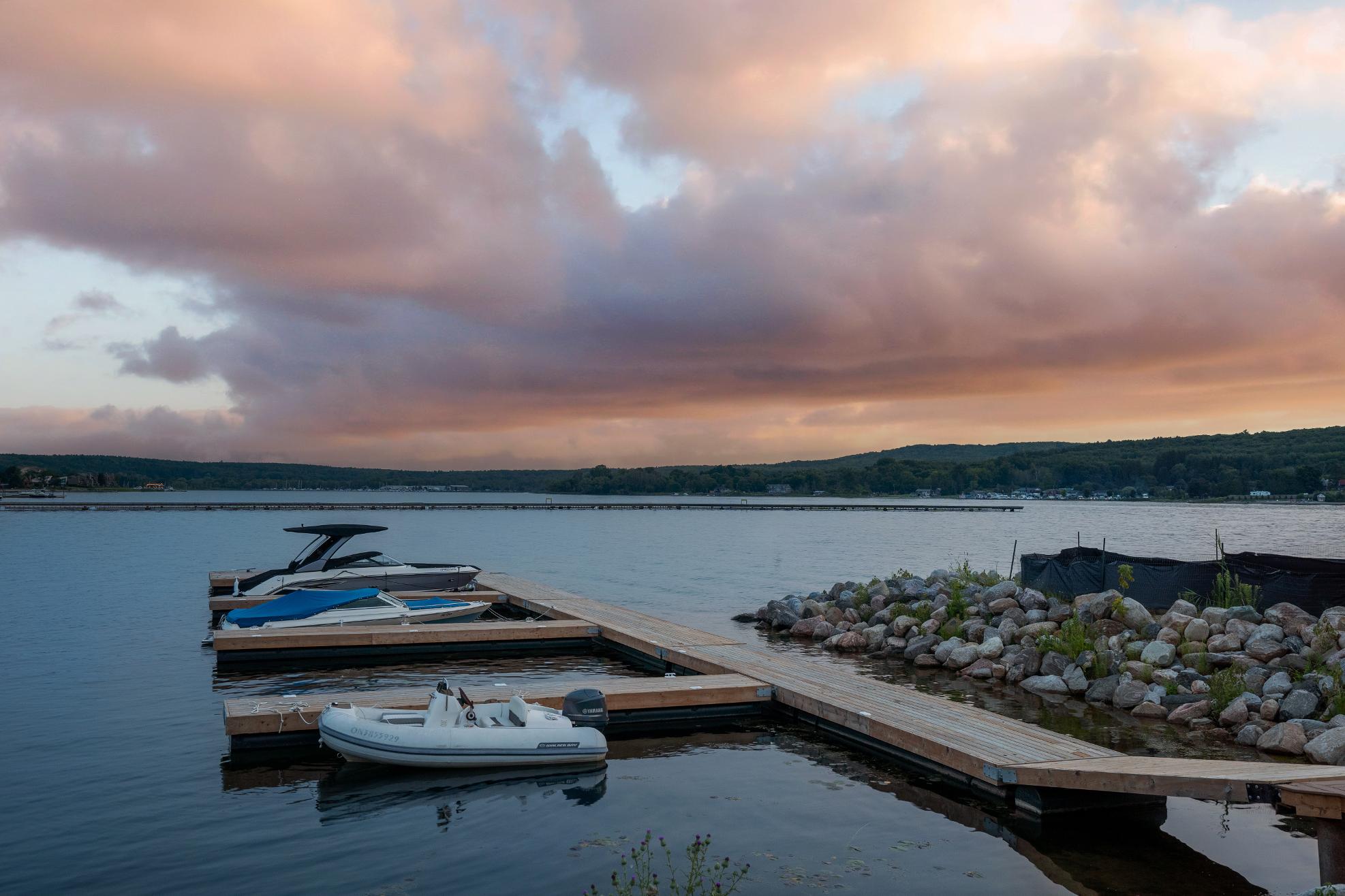 Discoverthe epitome of modern luxuryin thisstunning new2023 build,offering picturesquesunsetsand panoramic viewsoverPenetang Bayfrom everyangle of the home;stepsawayfrom the waterwith yourveryown personal26' dockplus fees,thislocation istrulyunbeatable