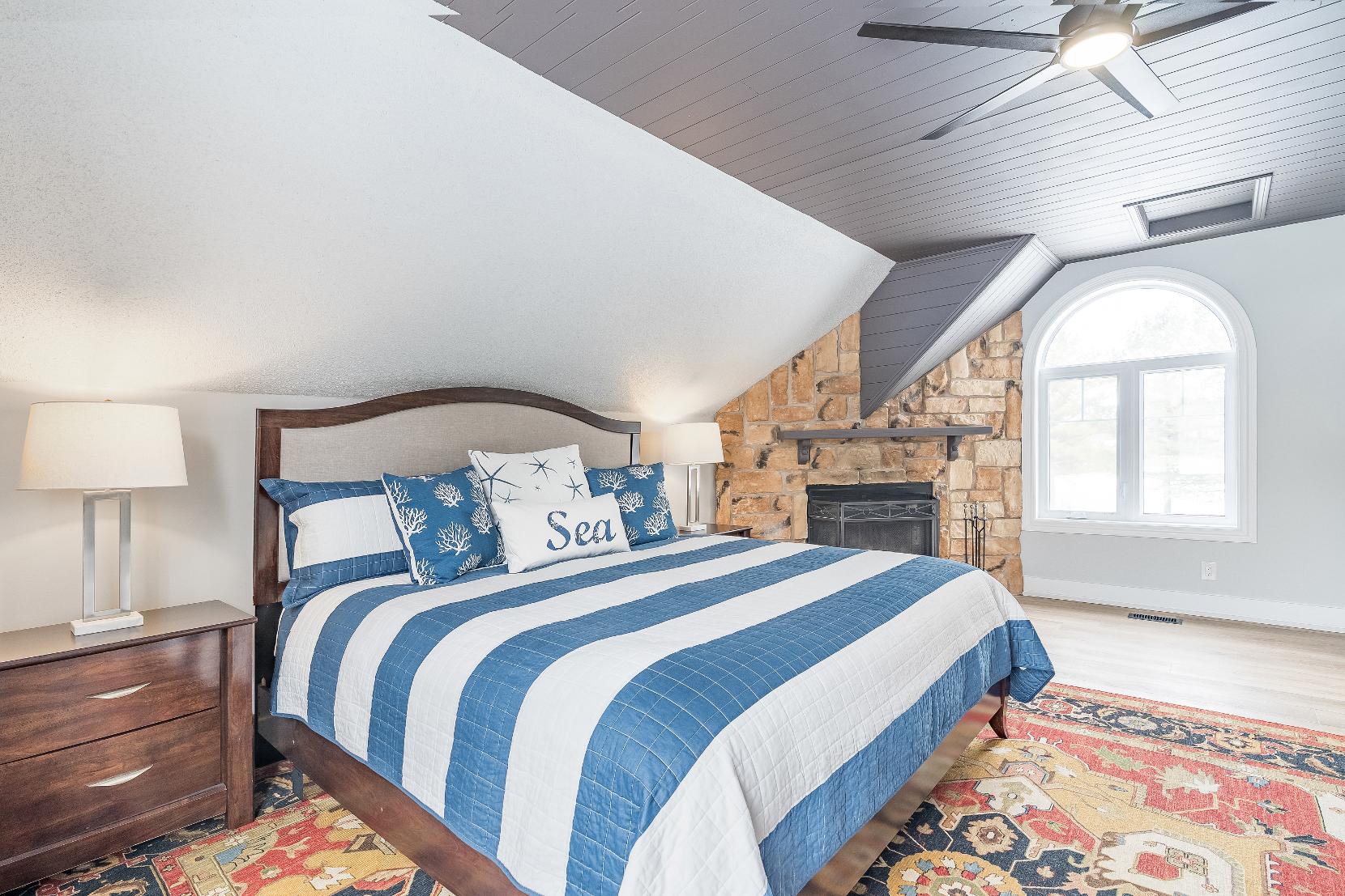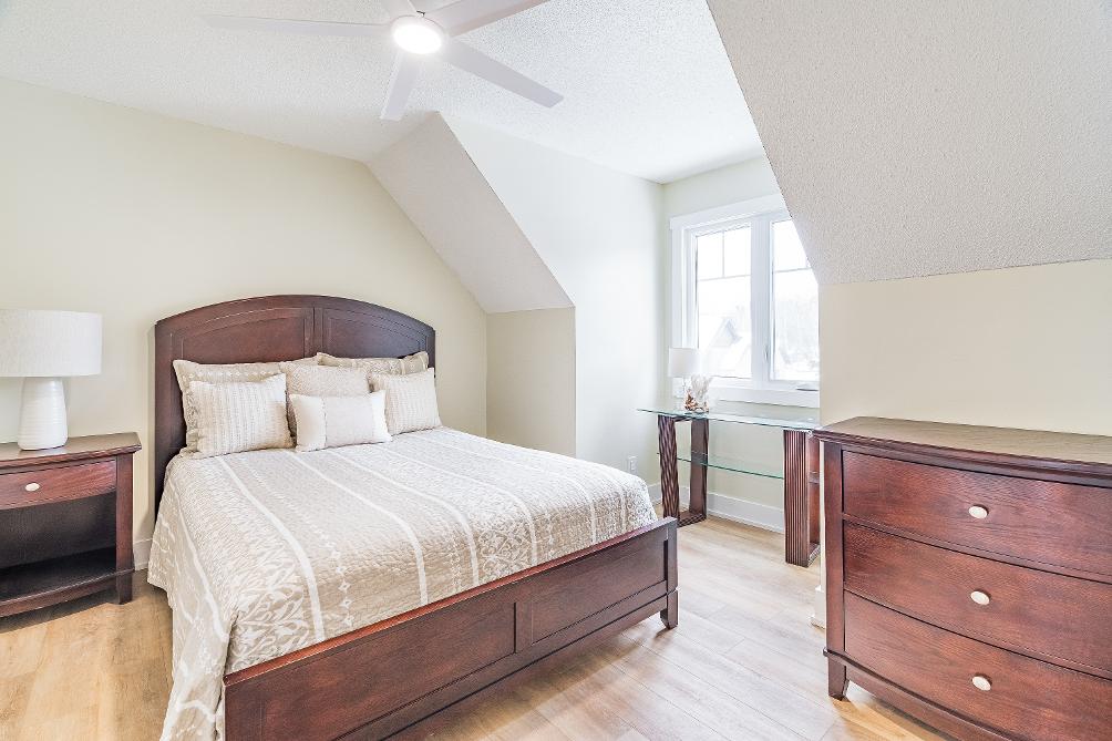 With five well-appointed bedroomsthe home offersexceptionalflexibilityforfamiliesand evolving lifestyles,including a distinctivebedroom just a fewsteps abovethe main levelwith vaulted ceilingsand a realwood-burning fireplace,idealasa privateretreat,sitting room,studio,office,orplayroom,while the mainleveliscompleted bya dining room,a generouslysized living,and familyroom anchored bya gasfireplace,a newlyrenovated fullbathroom,and a functionallaundryroom,while the upperlevelishighlighted bya luxuriousprimarysuitefeaturing a stunning ensuite,complemented bytwo additional bedroomsand a fullbathroom