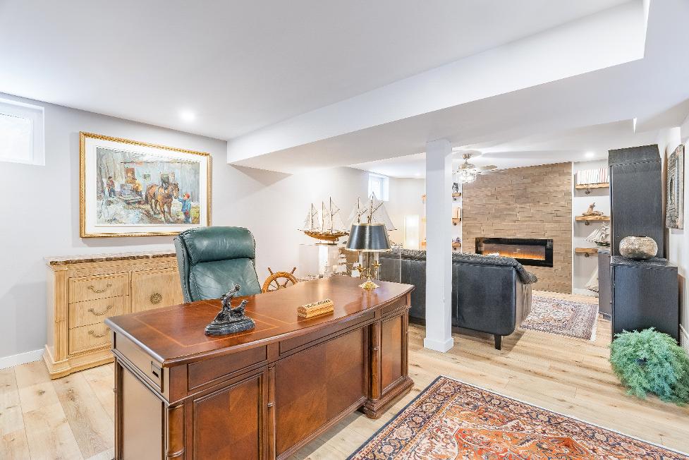 Thewalk-out lowerlevelisanything but secondary,featuring abundant naturallight and direct accessto the backyard,completewith a kitchen,living area,dining space,currentlyused asan office,a spaciousbedroom,and a fullbathroom,offering an ideallayout forextended familyguestsorelevated entertaining