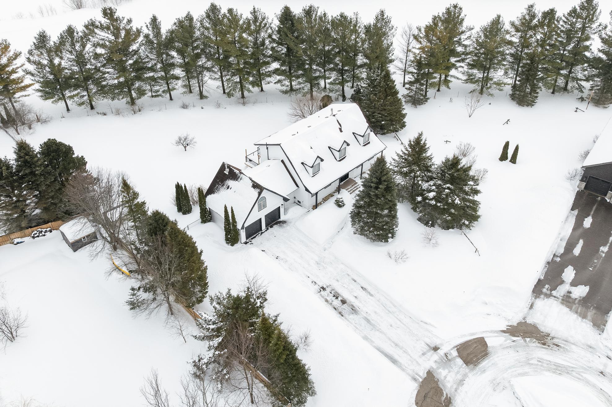 - 2-storeyhomesettled on overan acre and finished with a stoneand vinylsiding exterior