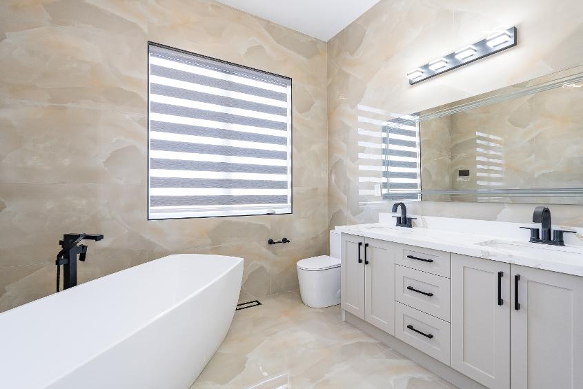 - Floor-to-ceiling windowscomplete with motorized zebra blinds