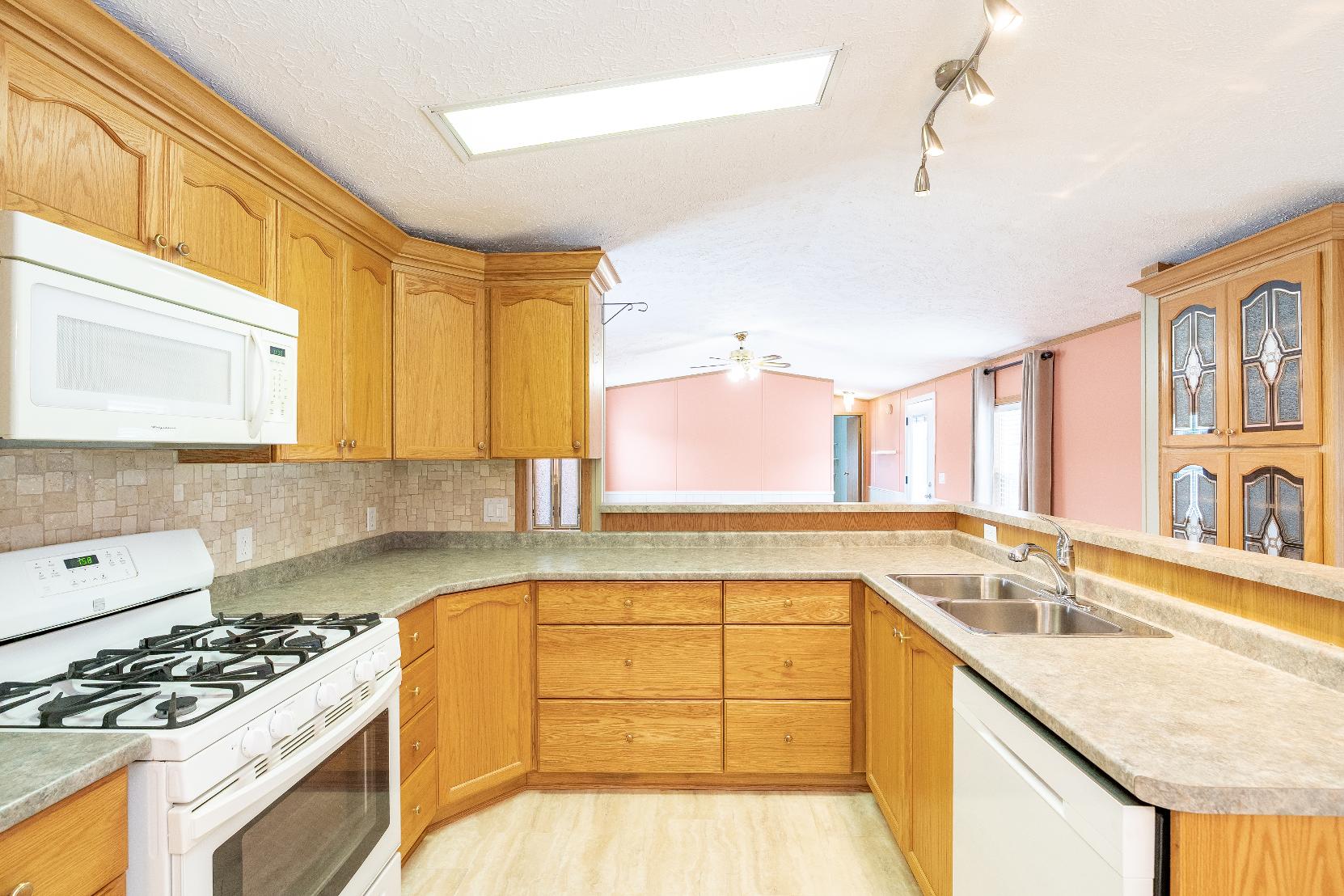 - Counterthat overlooksthe living room, perfect forentertaining and staying connected whilecooking