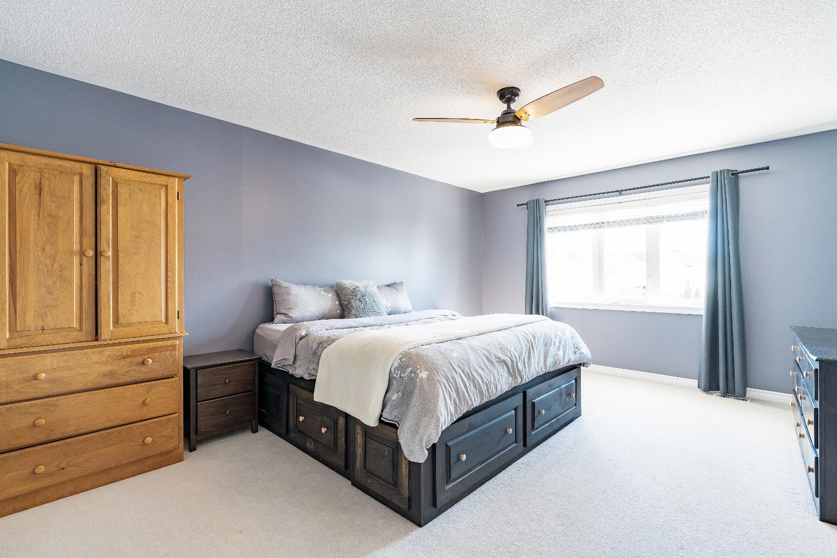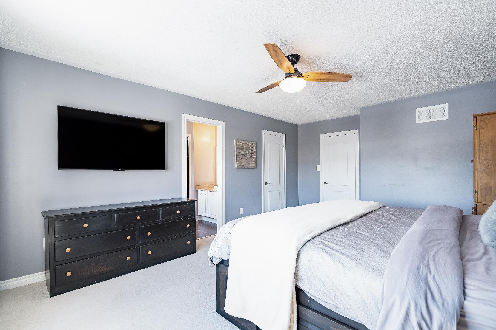 The primarybedroom ispaired with a fullensuitefeaturing a cornersoakertub perfect forlong, quiet evenings,a separateshower,and a spaciouswalk-in closet,whilean upperlevellaundryroom addsan extra layerof everydayconvenience