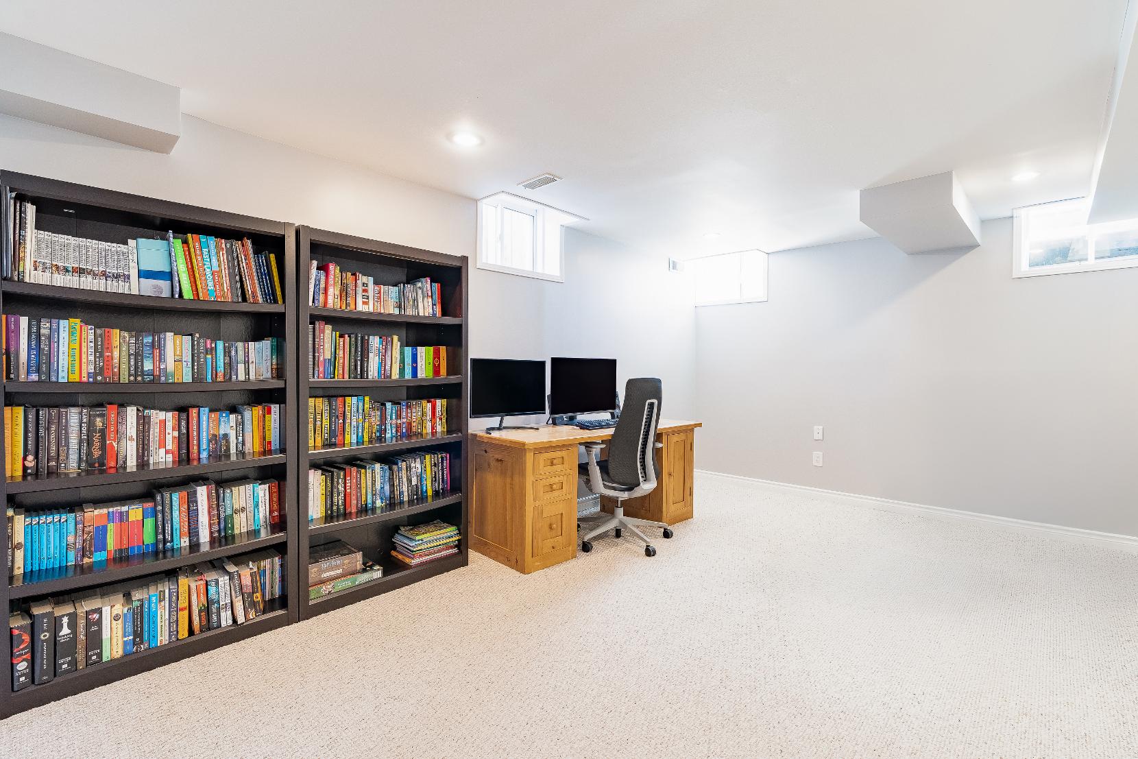 The partiallyfinished basement offersa blankcanvasreadyforyourvision,whetheryouimaginea recreation room formovienights,a home gym to start yourmorningsright,ora spacedesigned entirelyyourown