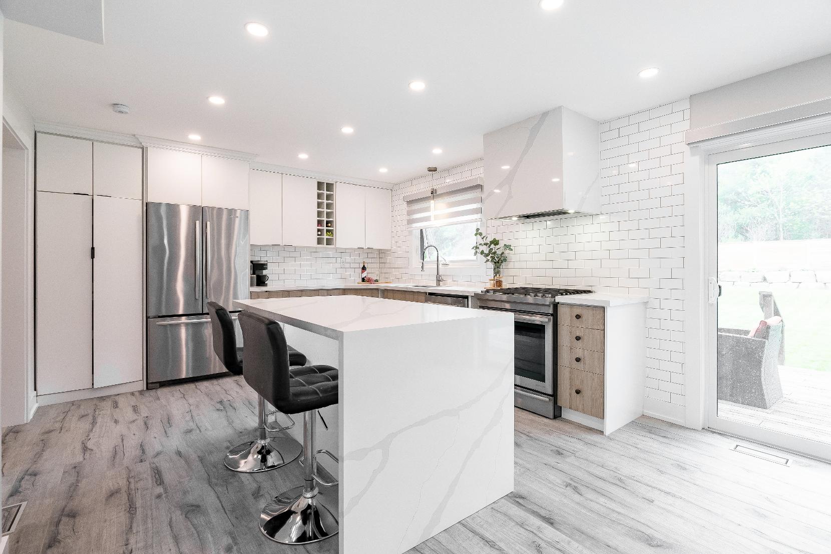 - 20'centre island complete with a waterfall edgeand breakfast barseating,perfect forhosting