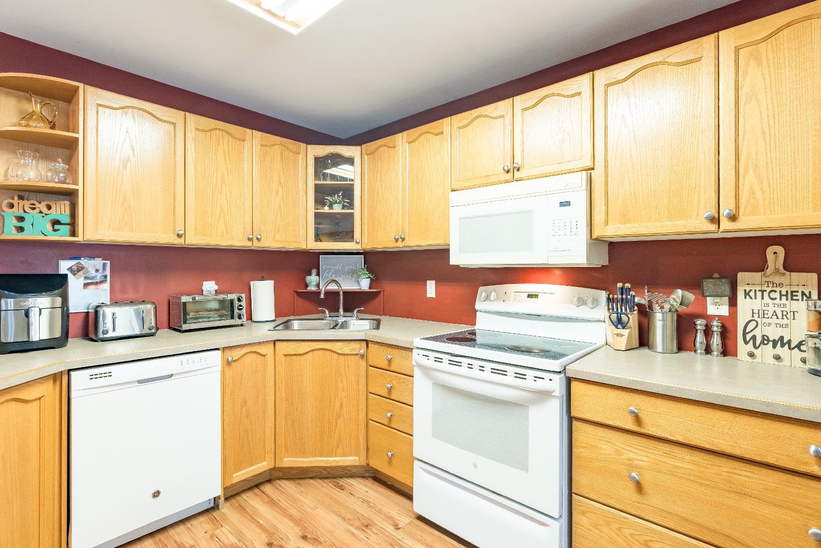 - Spaciouskitchen peninsula running along a raised half wall,offering an extended stretch of counterspaceidealforfood prep