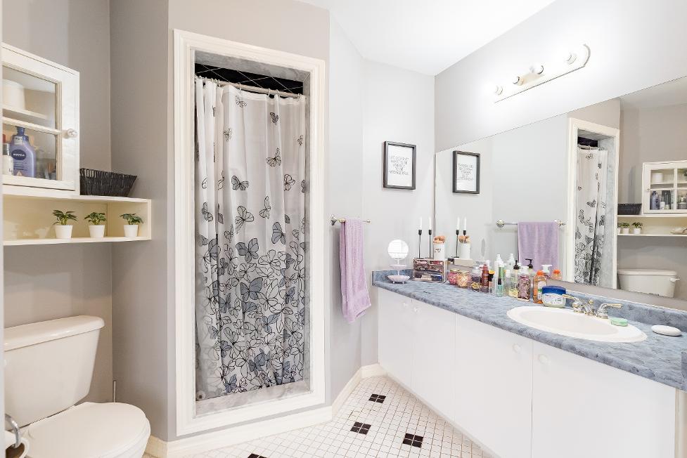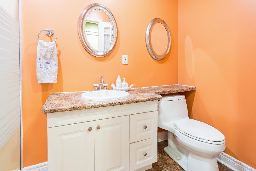 - Oversized vanityproviding a wealth of counterspaceand under-sinkstorage