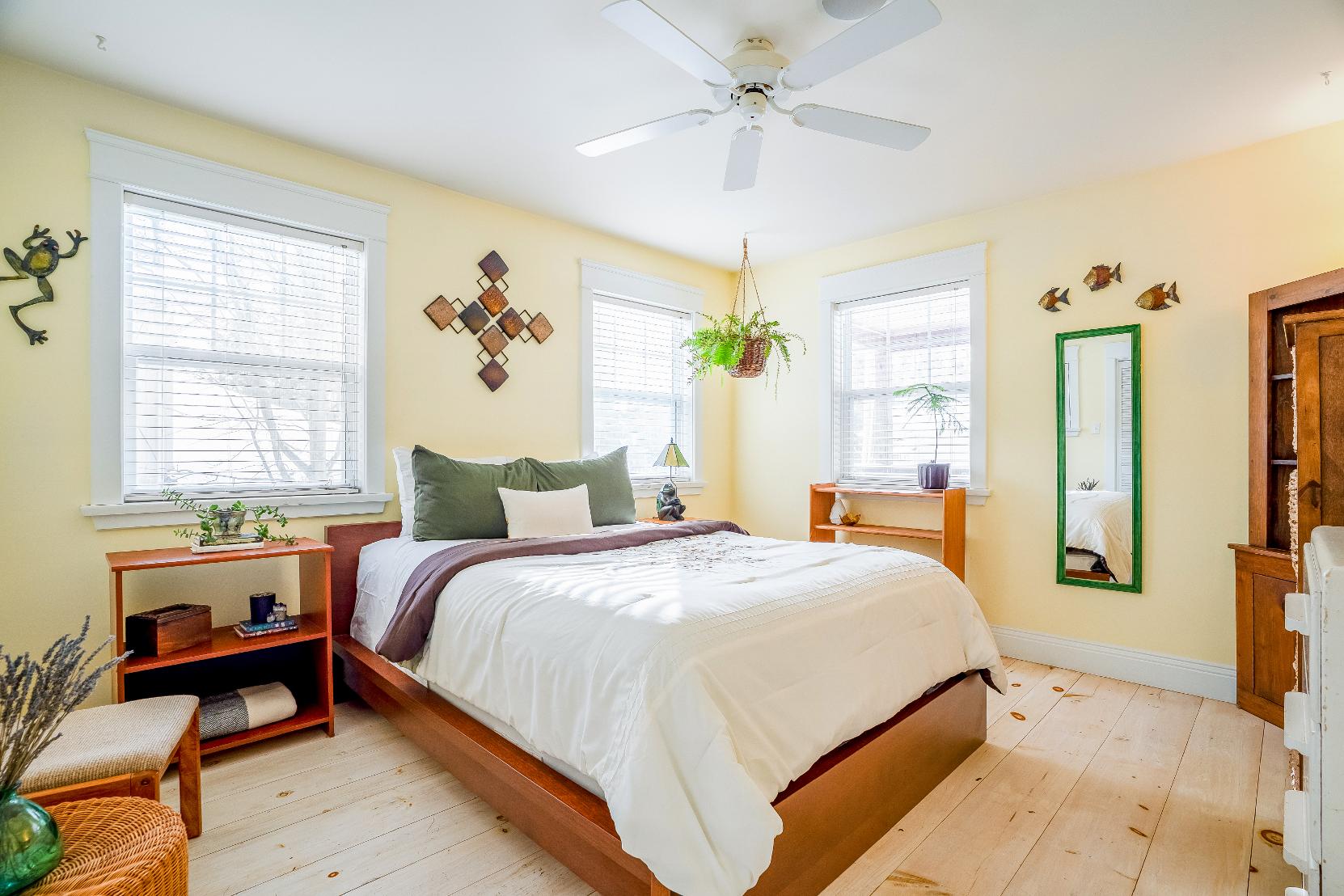 - Three windowsflooding the space with sunlight