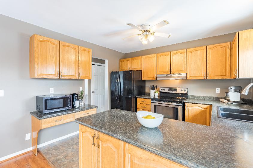 - Wealth of warm-toned cabinetry